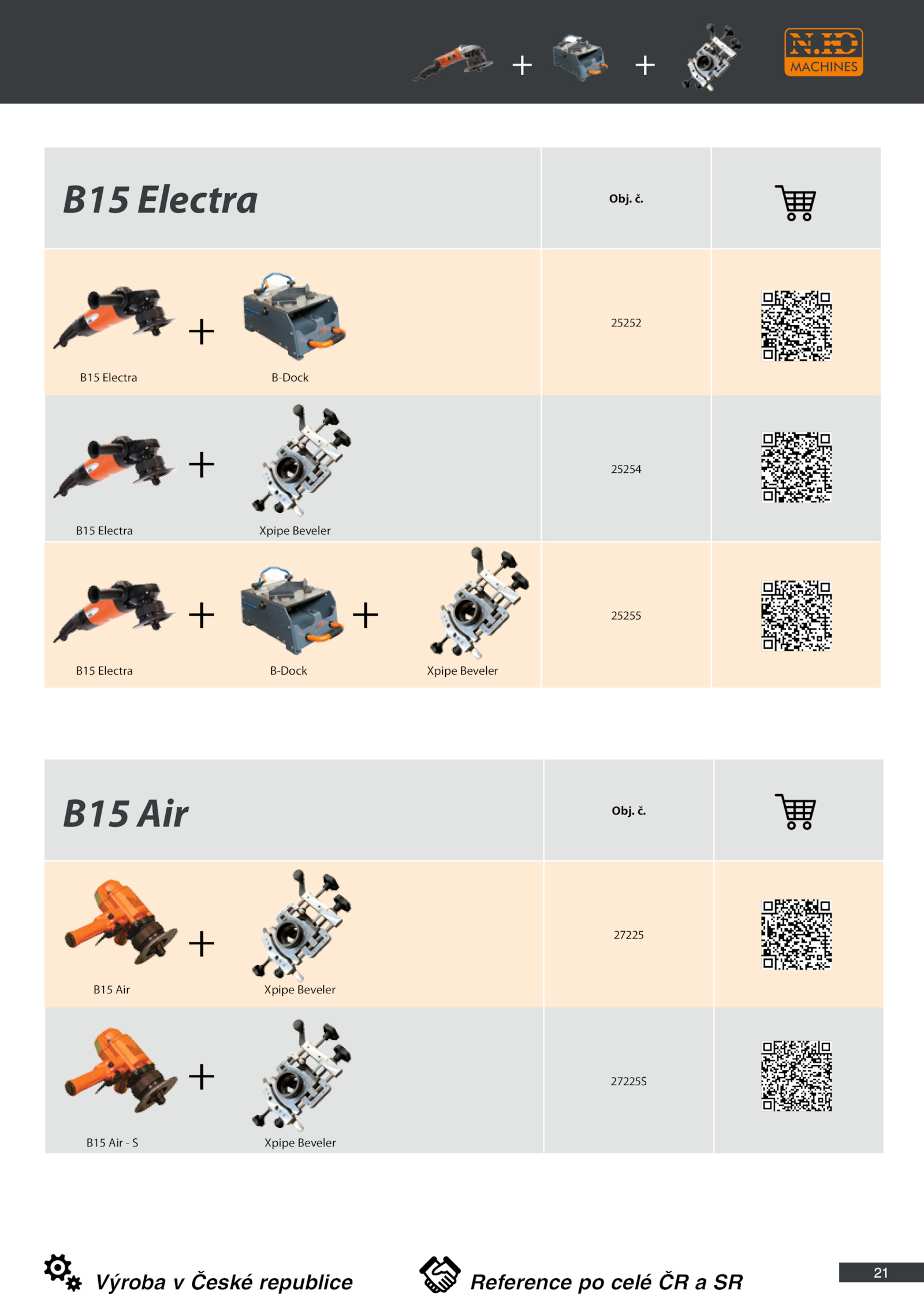 č. 27225 27225S B15 Electra B15 Air + + + + + + B15 Electra Xpipe Beveler B15 Air Xpipe Beveler B15 Electra B-Dock Xpipe Beveler B15 Electra B-Dock B15 Air Xpipe Beveler + + Výroba České republice Reference celé SR .21 Obj. č. 25252 25254 25255 Obj