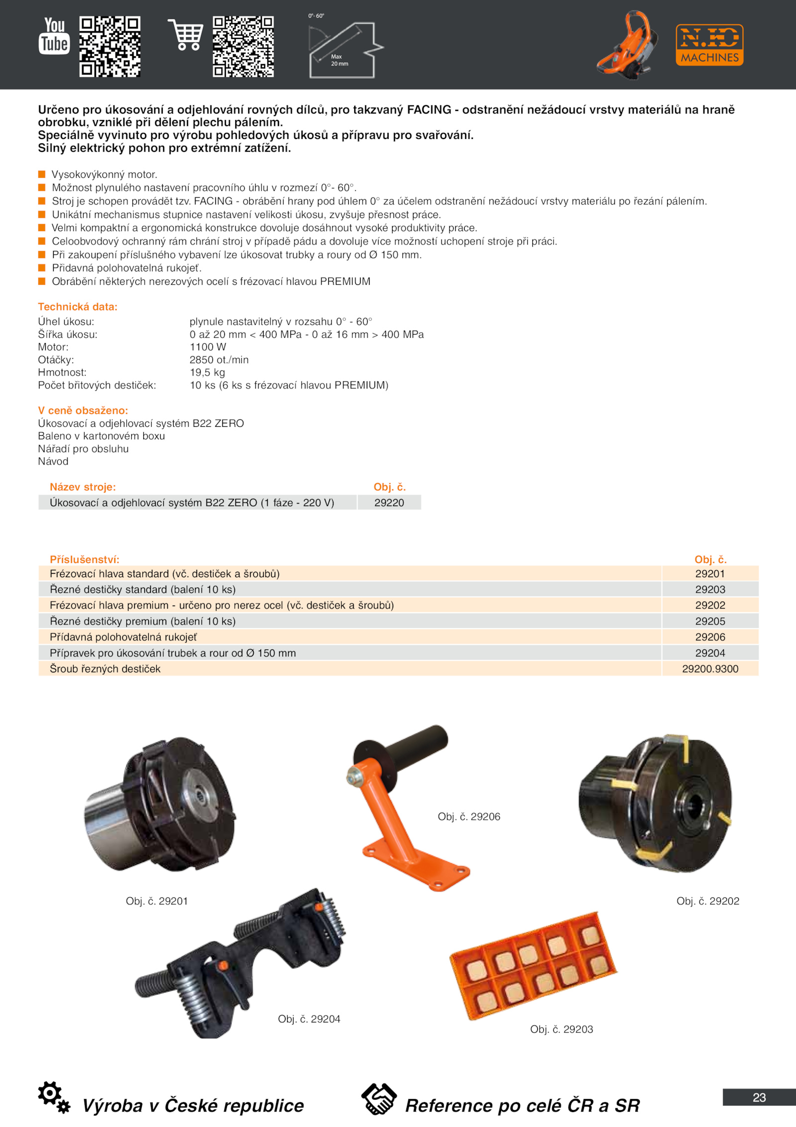 Úkosovací odjehlovací systém B22 ZERO fáze 220 29220