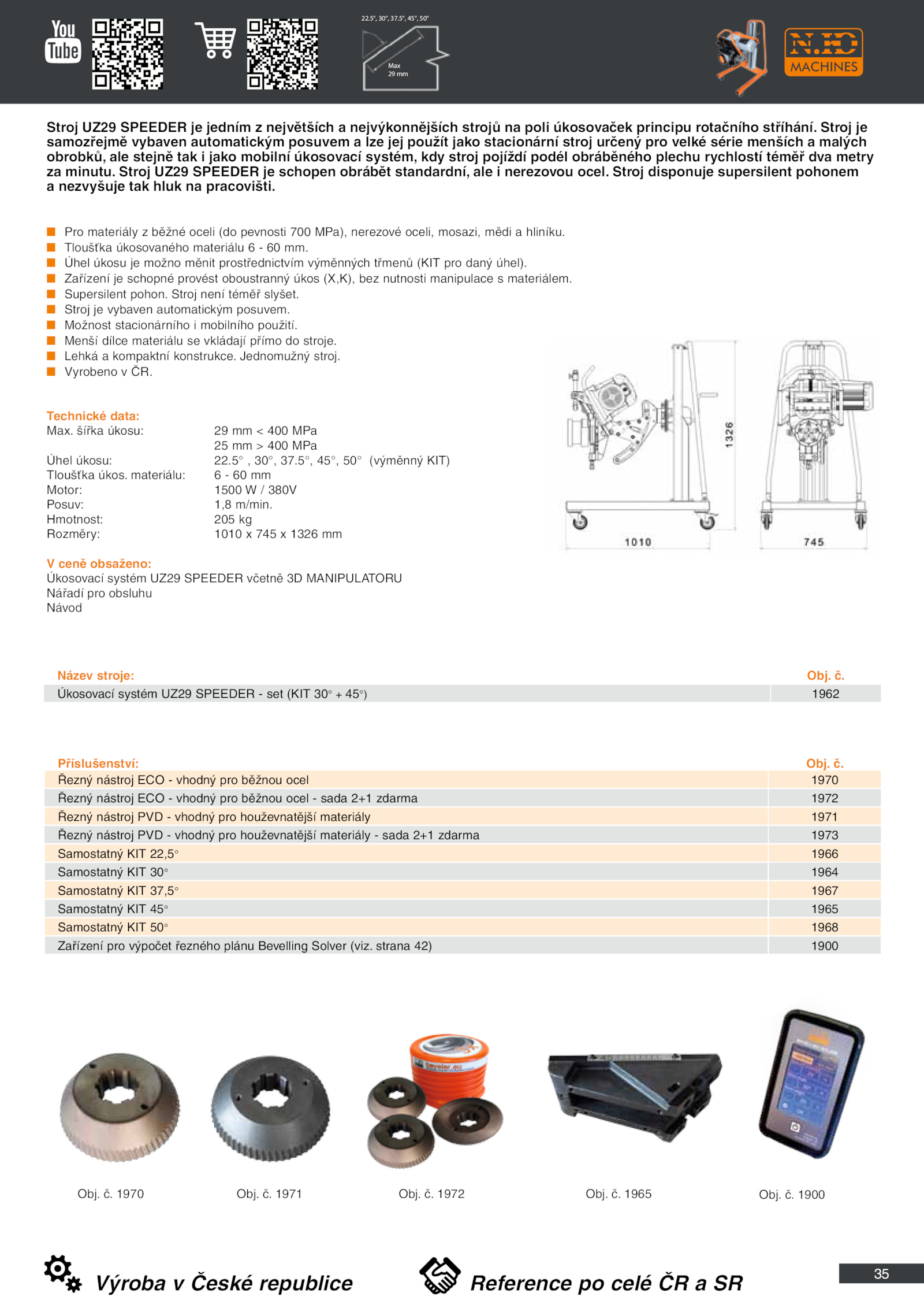 ■ Menší dílce materiálu vkládají přímo stroje. 1965 Obj. Stroj UZ29 SPEEDER schopen obrábět standardní, ale nerezovou ocel. Stroj není téměř slyšet. materiálu: mm