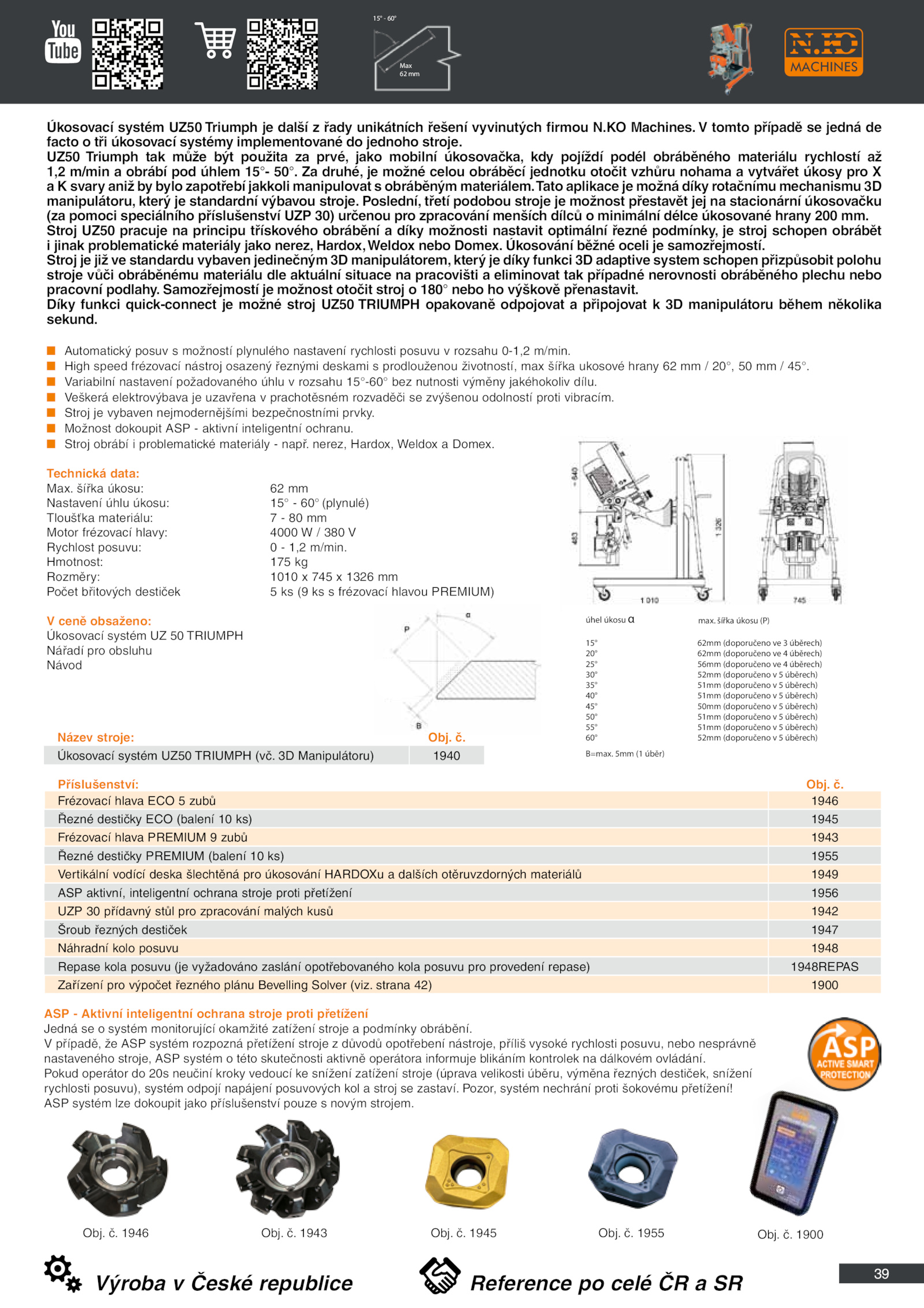 Úkosovací systém UZ50 TRIUMPH (vč. Úkosování běžné oceli samozřejmostí.