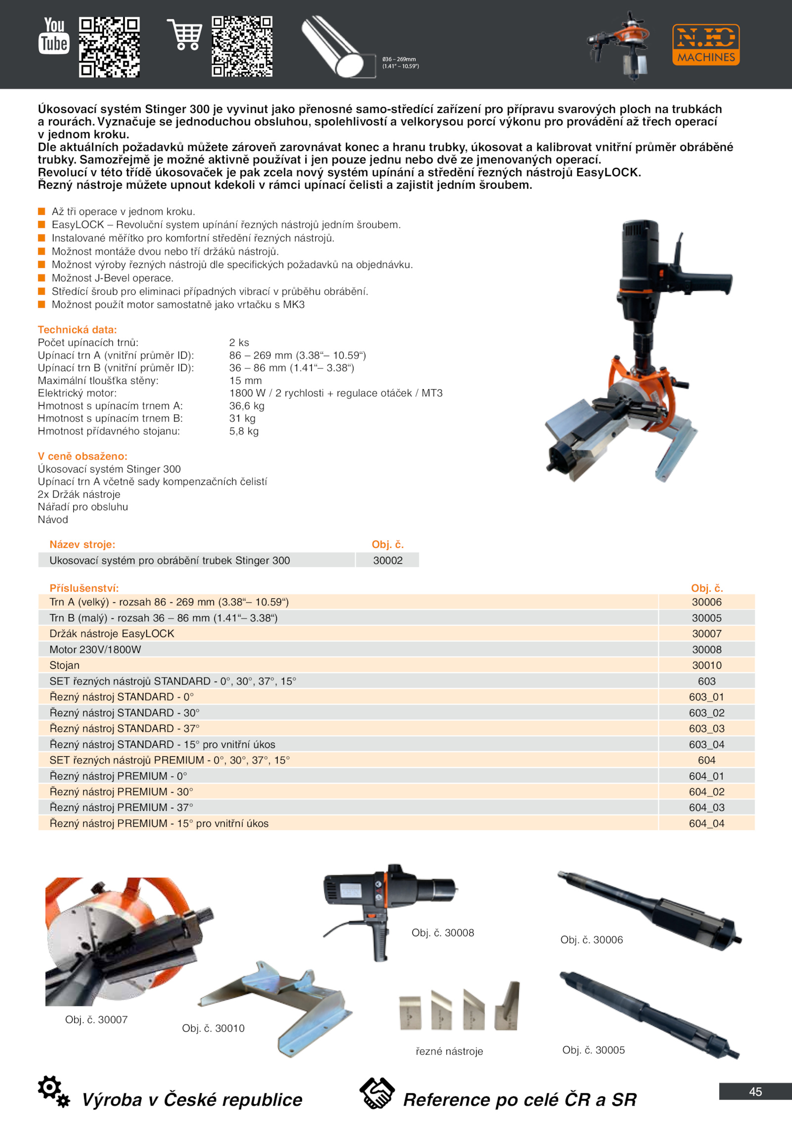 Ukosovací systém pro obrábění trubek Stinger 300 30002
