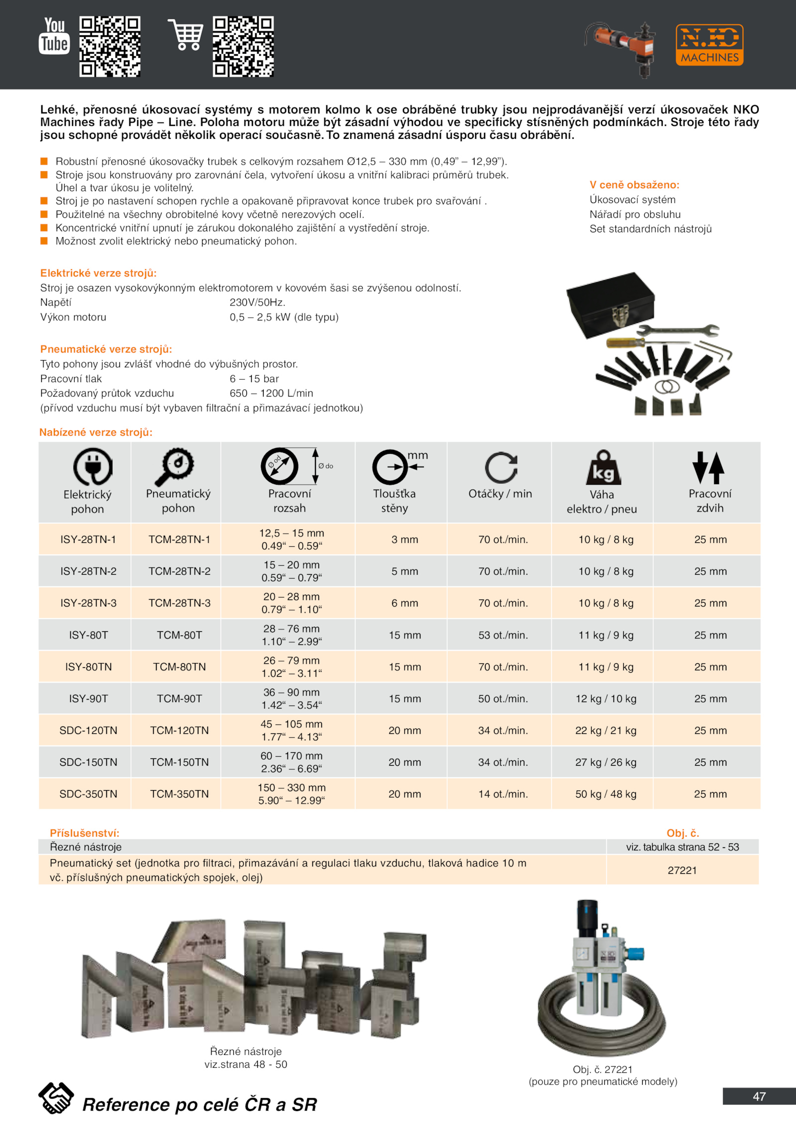 Lehké, přenosné úkosovací systémy motorem kolmo ose obráběné trubky jsou nejprodávanější verzí úkosovaček NKO