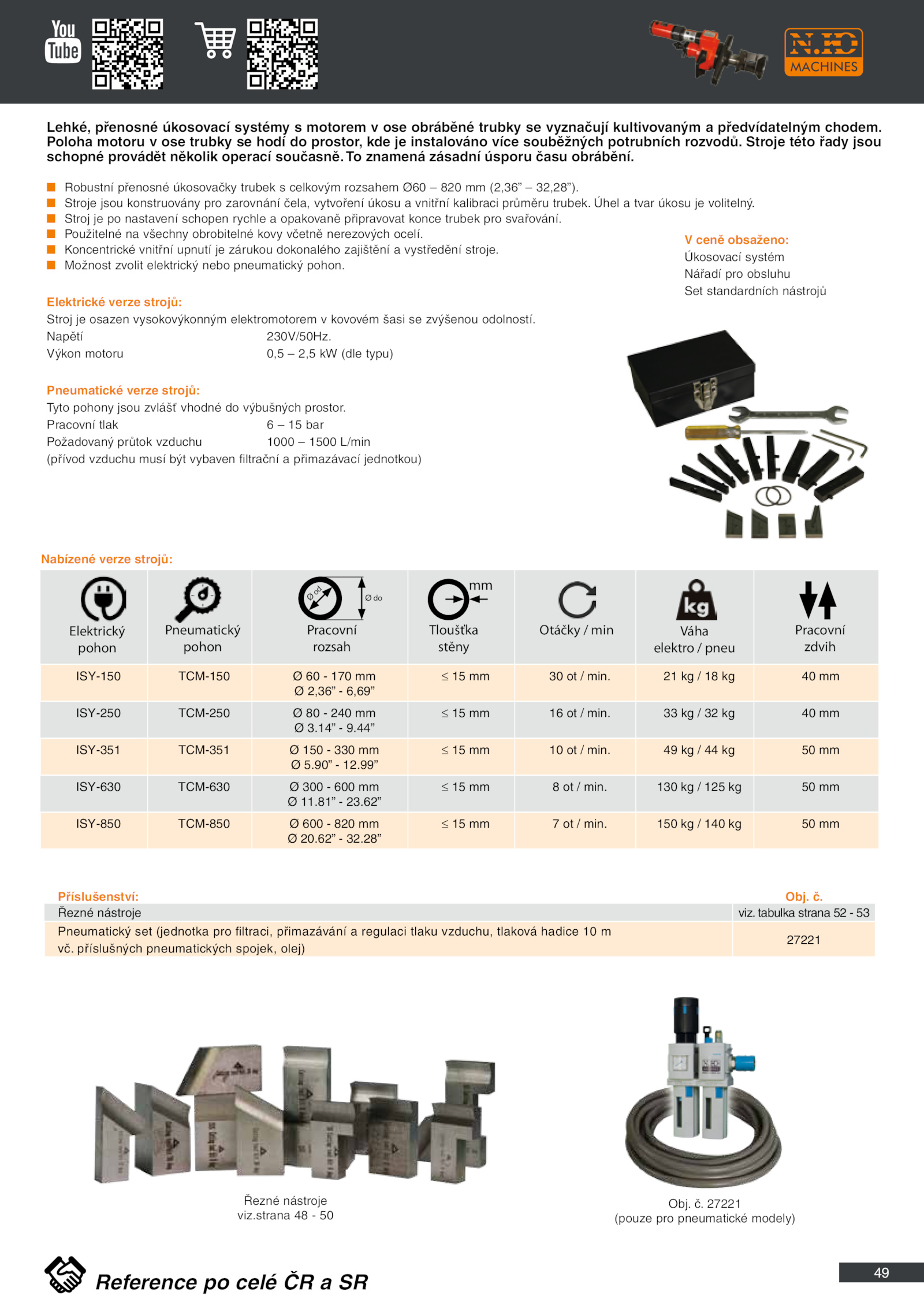 ■ Robustní přenosné úkosovačky trubek celkovým rozsahem Ø60 820 (2,36” 32,28”).62” 32.strana 50