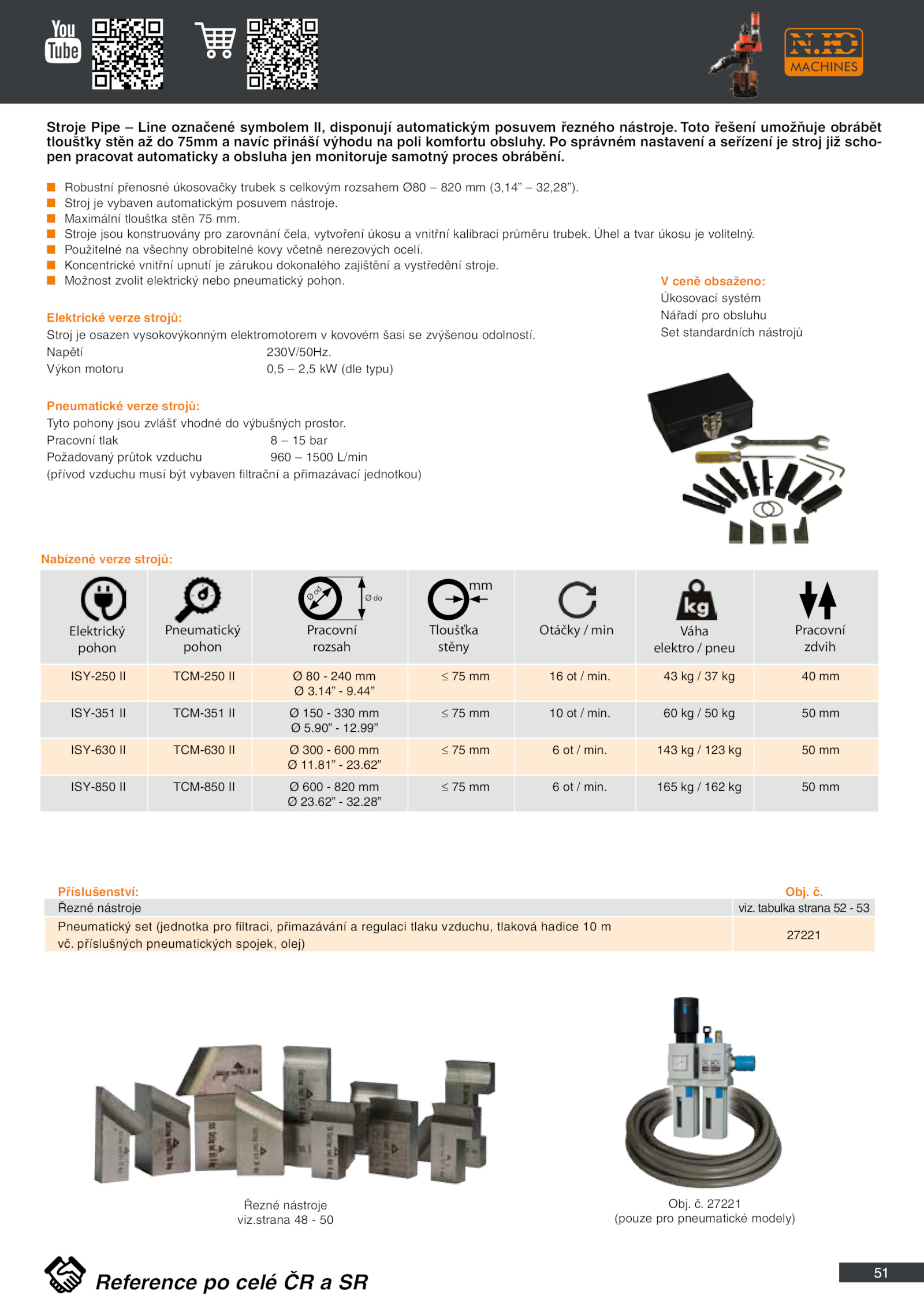 ■ Stroje jsou konstruovány pro zarovnání čela, vytvoření úkosu vnitřní kalibraci průměru trubek.
