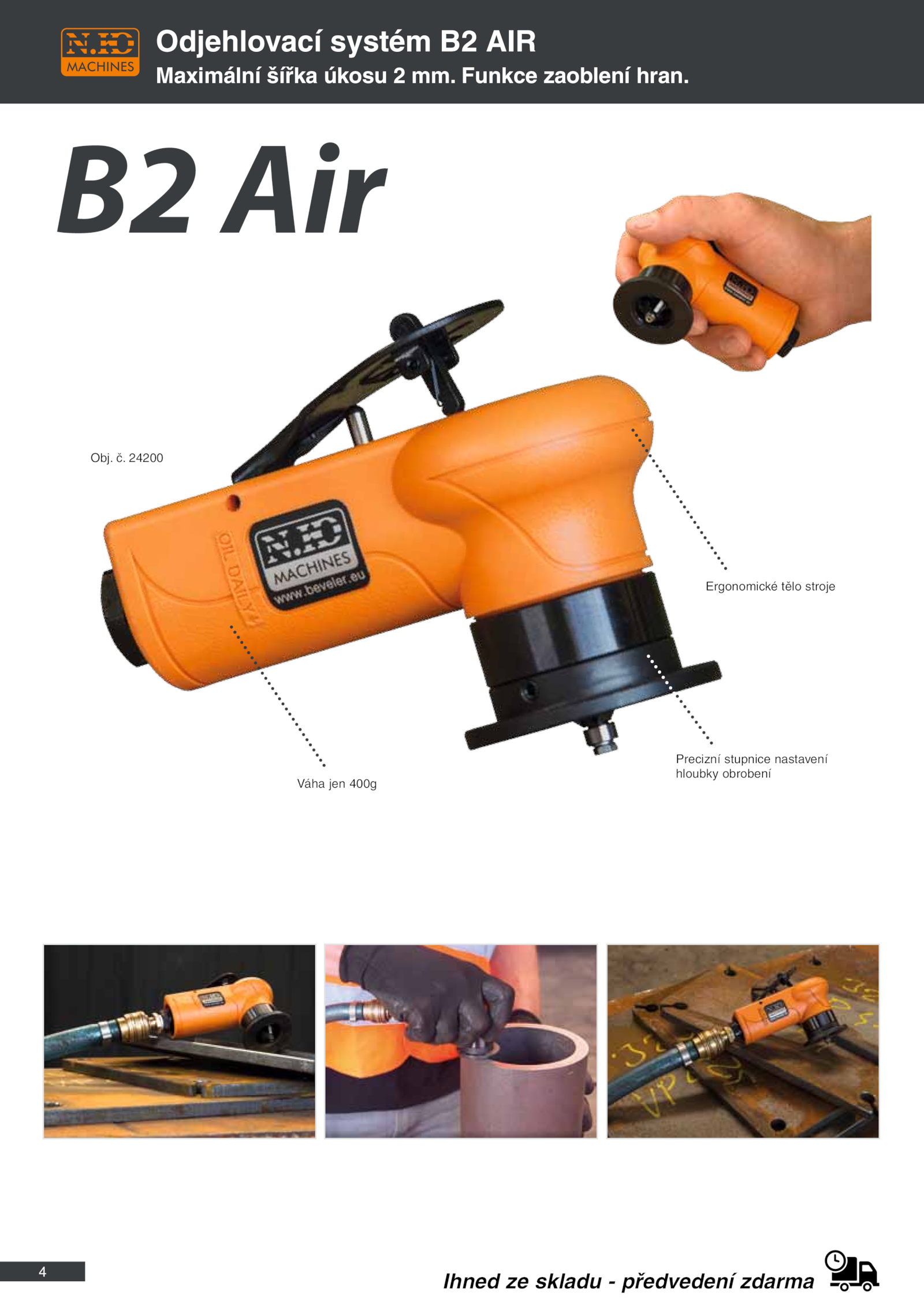 B2 Air Obj.4 Odjehlovací systém AIR Maximální šířka úkosu mm. Funkce zaoblení hran. 24200 Ergonomické tělo stroje Váha jen 400g Precizní stupnice nastavení hloubky obrobení Ihned skladu předvedení zdarma