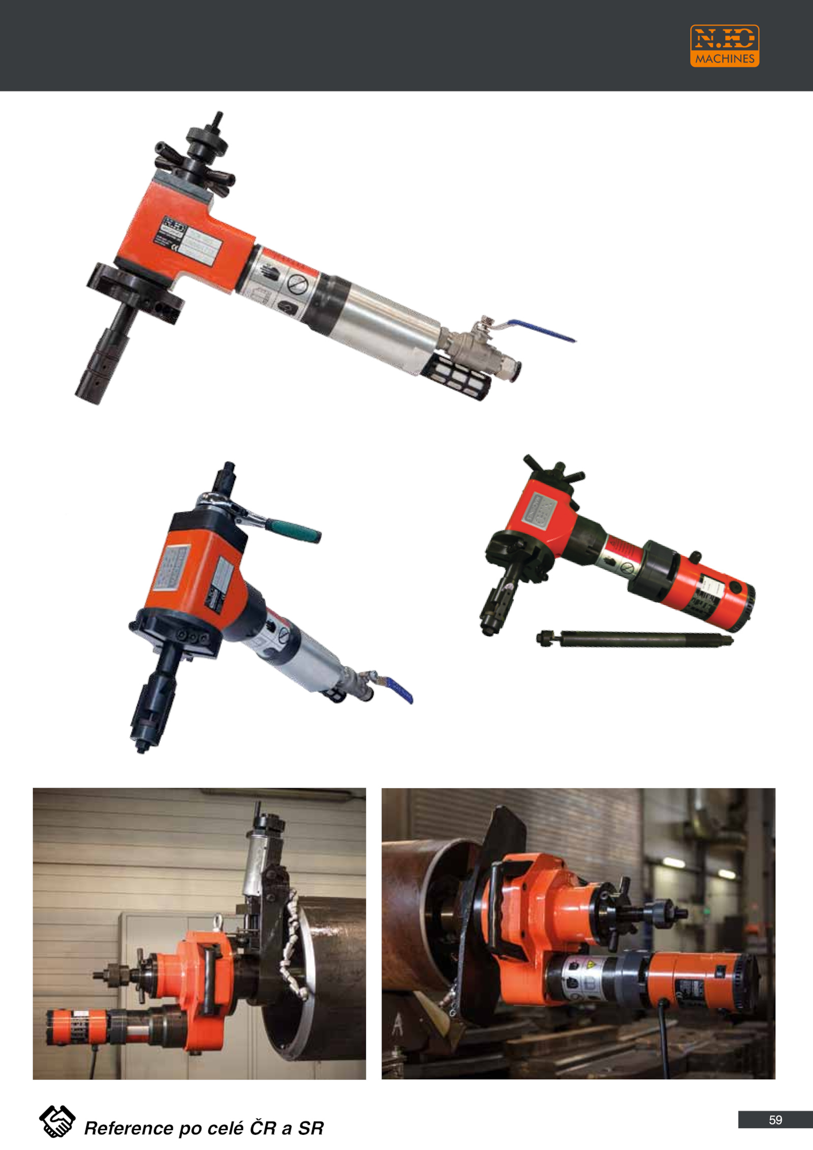 Řada ručních a automatických úkosovaček a odjehlovacích systémů