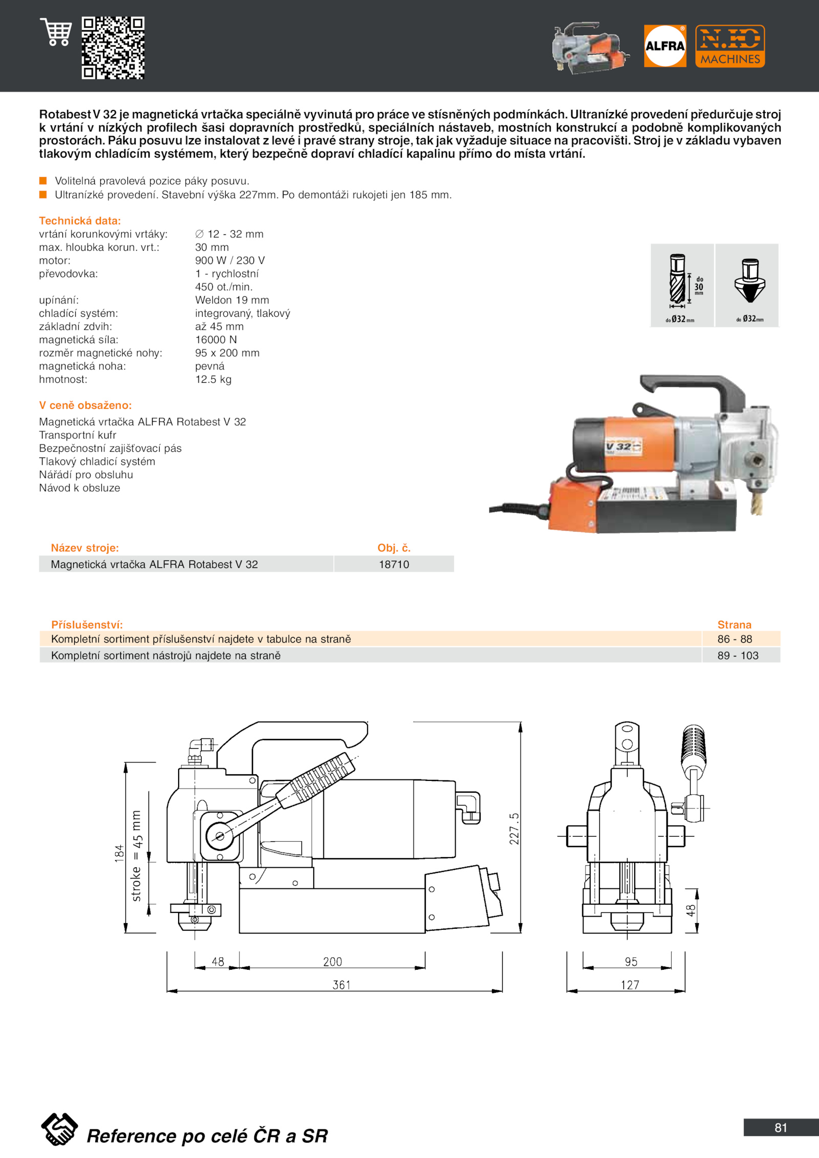 RotabestV magnetická vrtačka speciálně vyvinutá pro práce stísněných podmínkách. Stavební výška 227mm./min. vrt. Páku posuvu lze instalovat levé pravé strany stroje, tak jak vyžaduje situace pracovišti