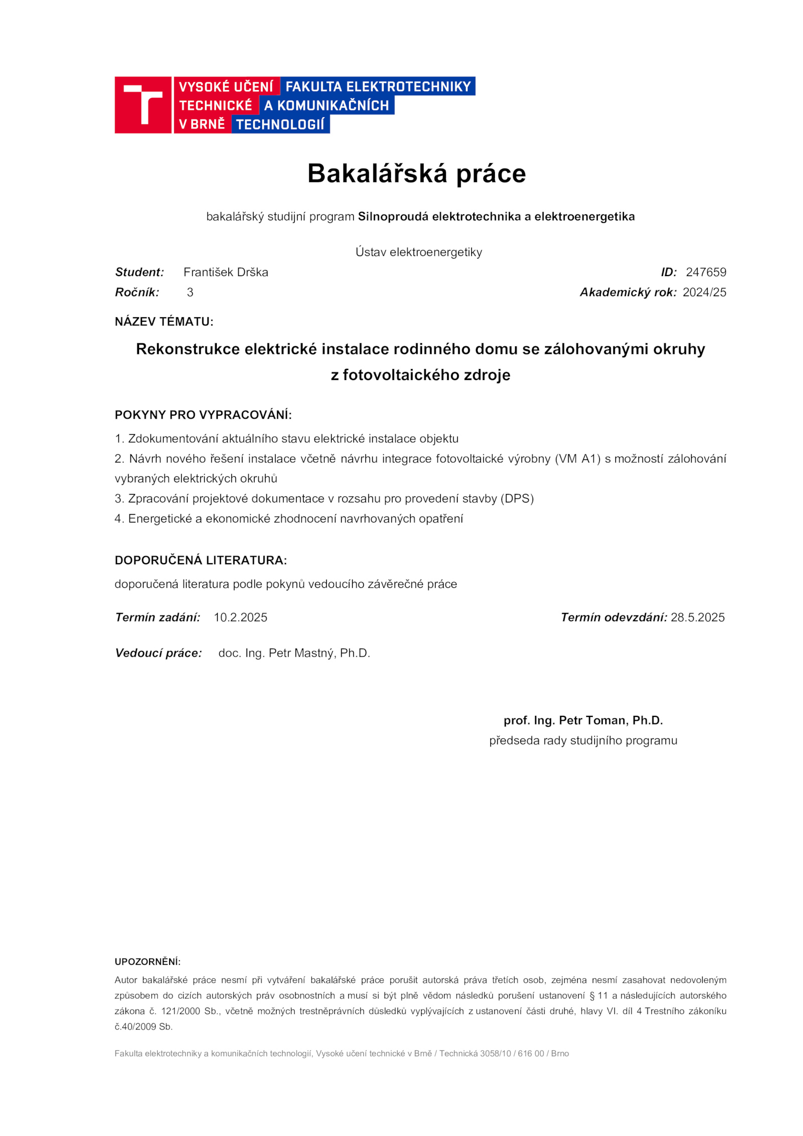Rekonstrukce elektrické instalace rodinného domu zálohovanými okruhy