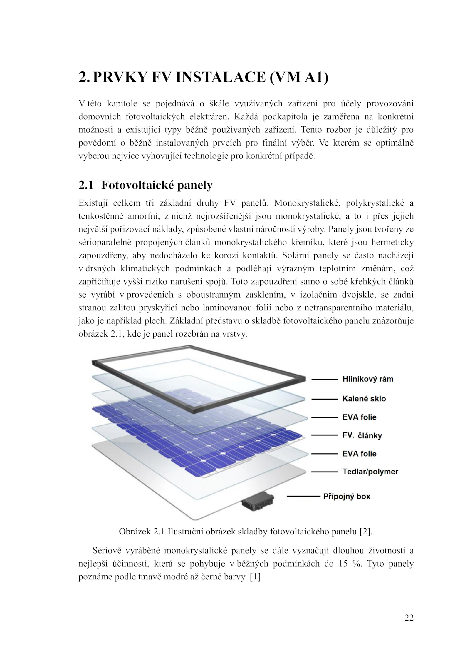 2.1, kde panel rozebrán vrstvy. Monokrystalické, polykrystalické a