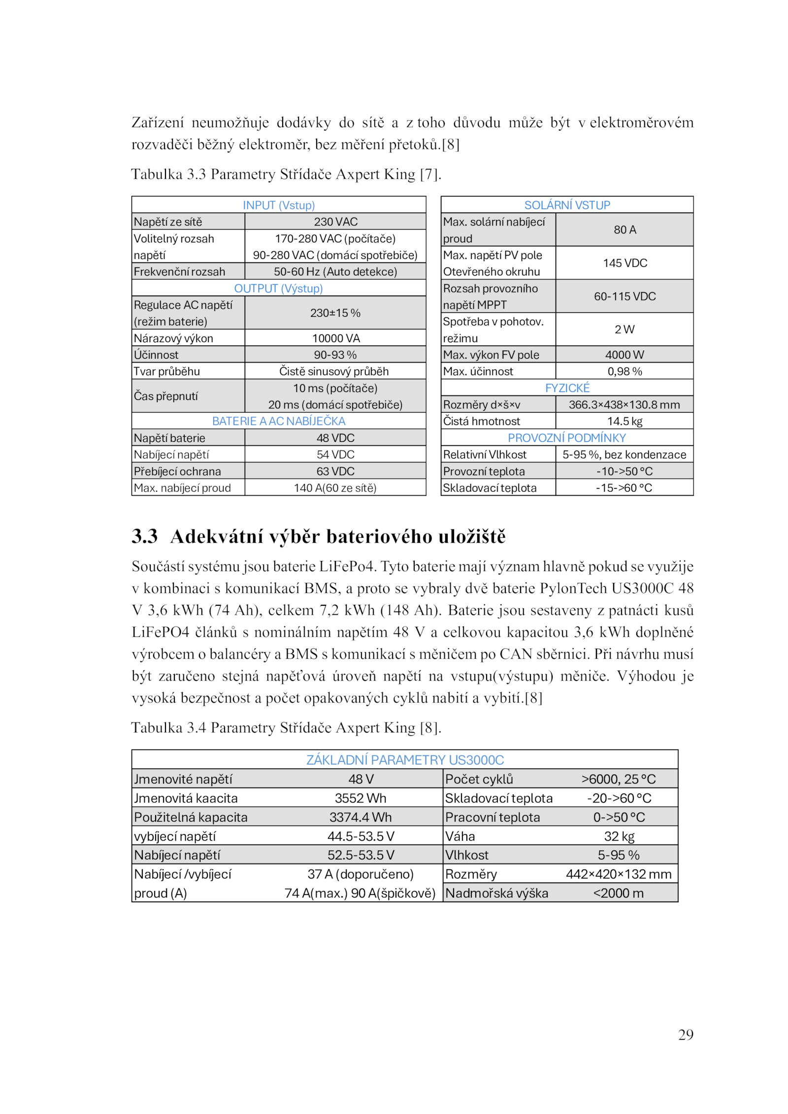 výrobcem balancéry BMS komunikací měničem CAN sběrnici.4 Parametry Střídače Axpert King [8]. Při návrhu musí