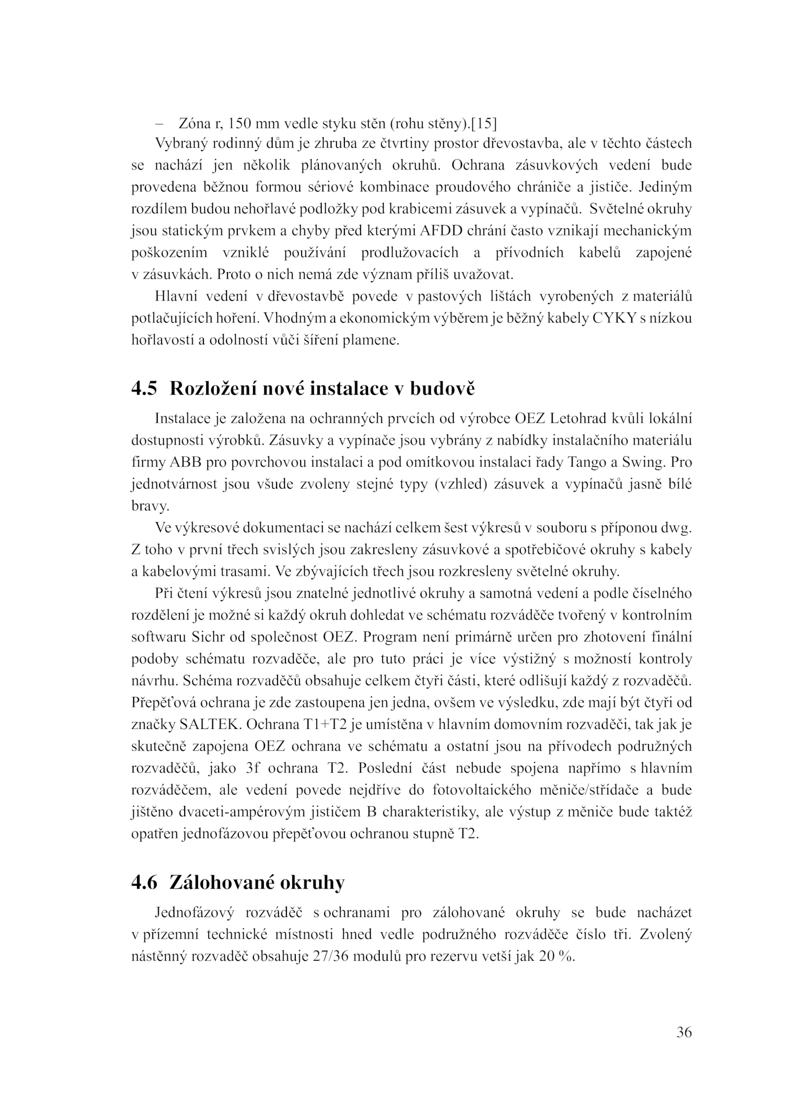 nástěnný rozvaděč obsahuje 27/36 modulů pro rezervu vetší jak %. Zásuvky vypínače jsou vybrány nabídky instalačního materiálu