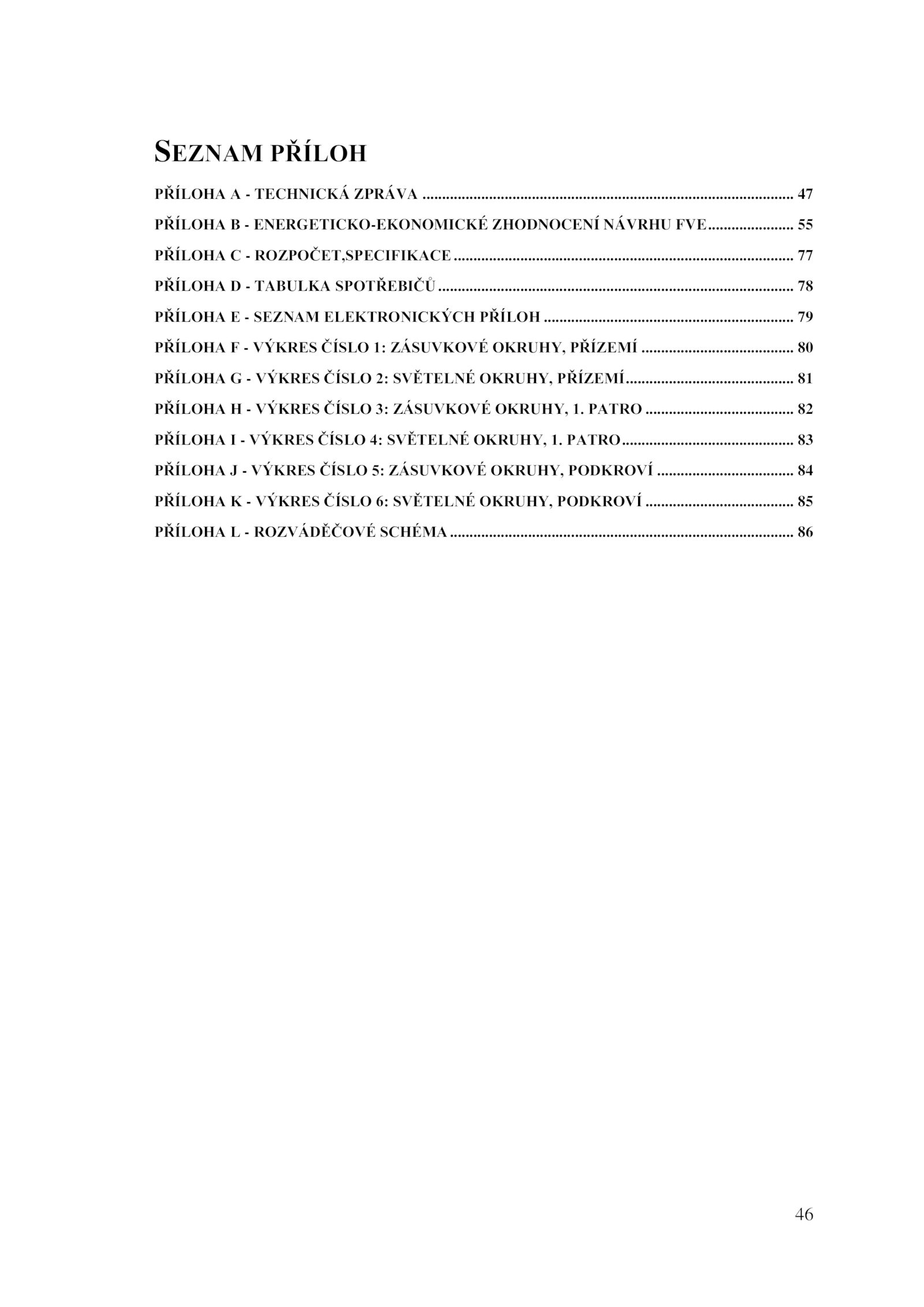 PŘÍLOHA SEZNAM ELEKTRONICKÝCH PŘÍLOH ...........46