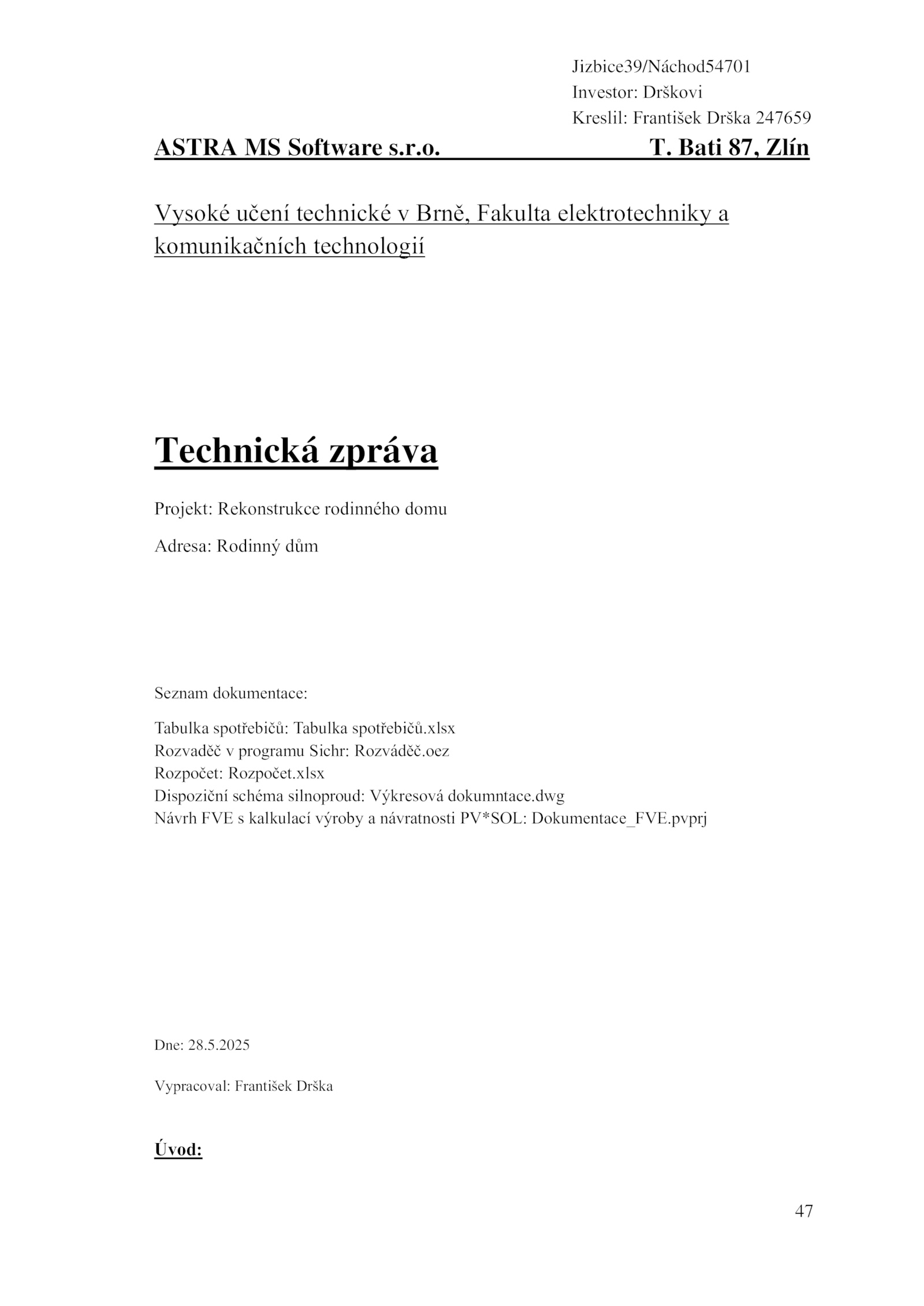 Návrh FVE kalkulací výroby návratnosti PV*SOL: Dokumentace_FVE.2025