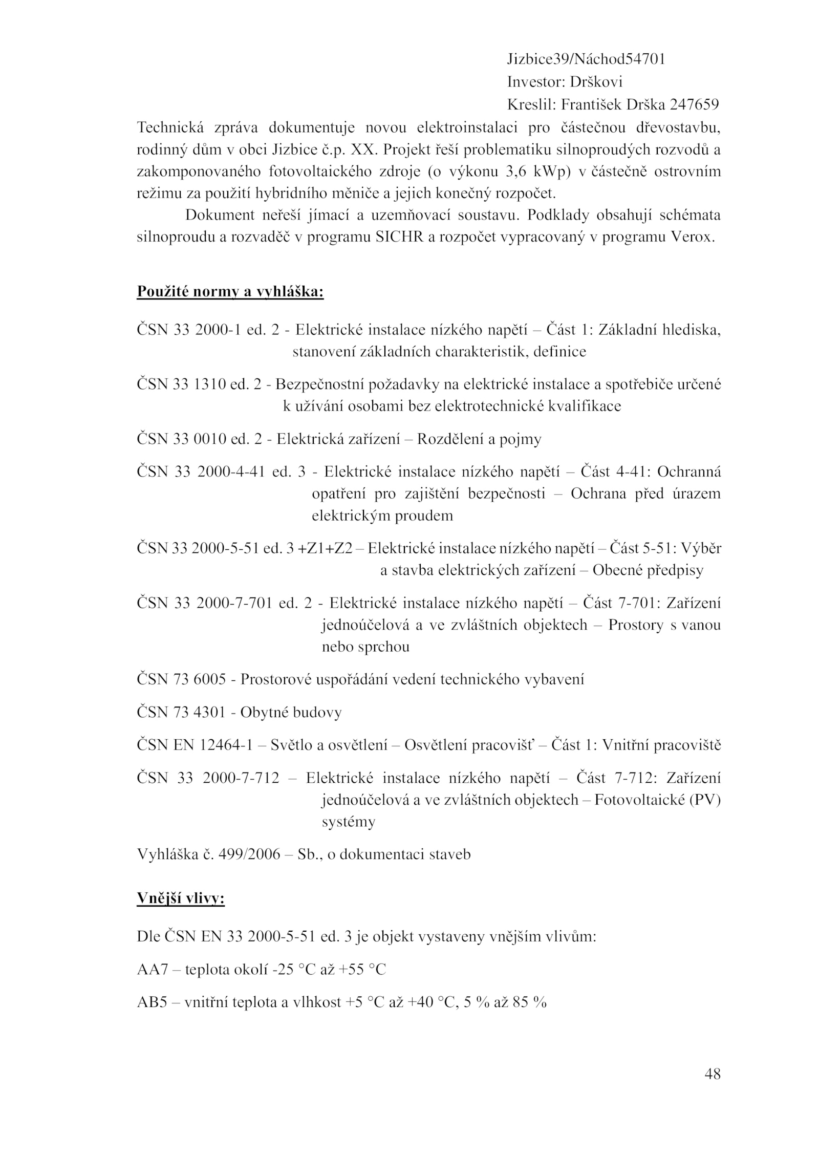 ČSN 2000-5-51 ed. Projekt řeší problematiku silnoproudých rozvodů a