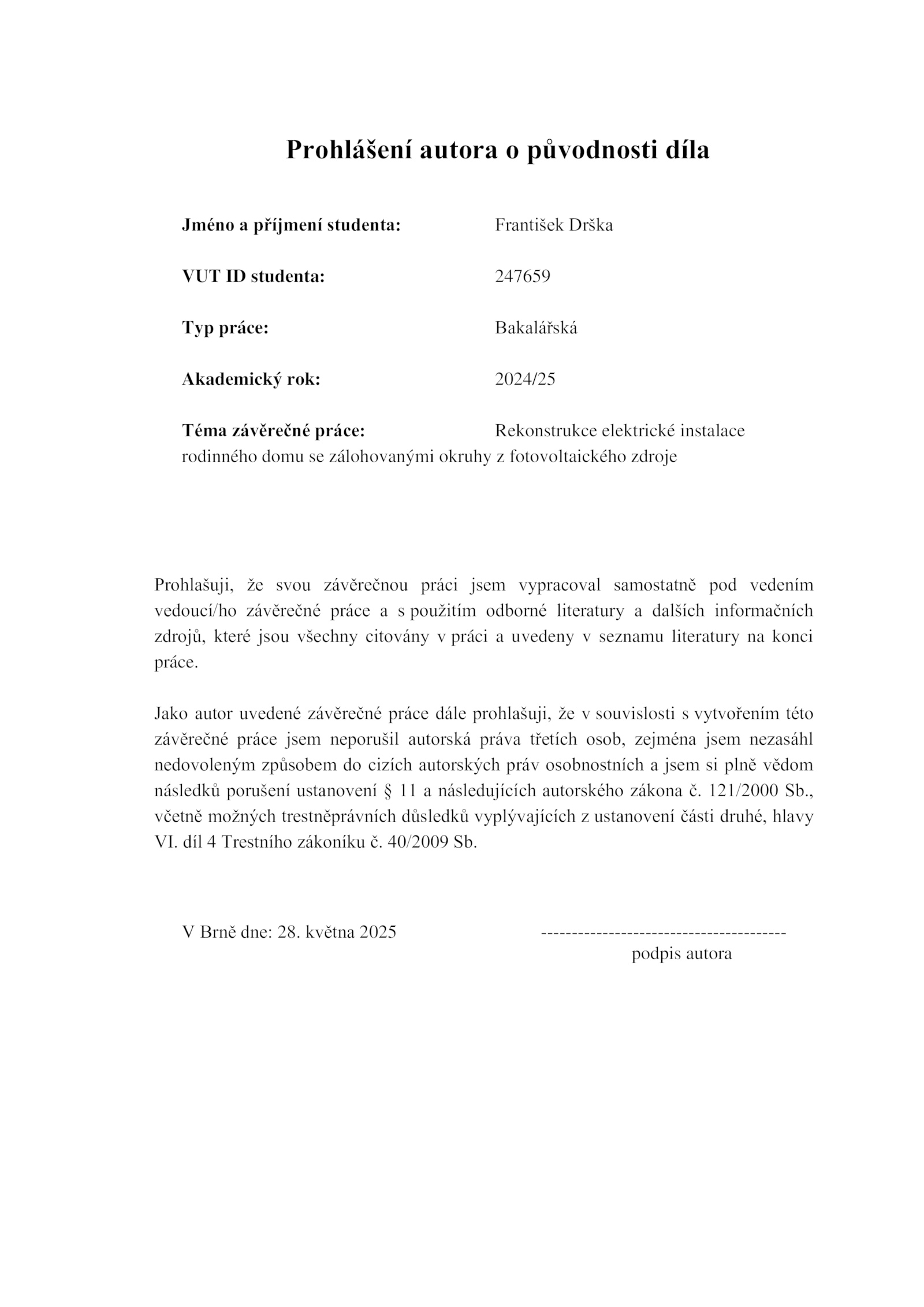 Téma závěrečné práce: Rekonstrukce elektrické instalace