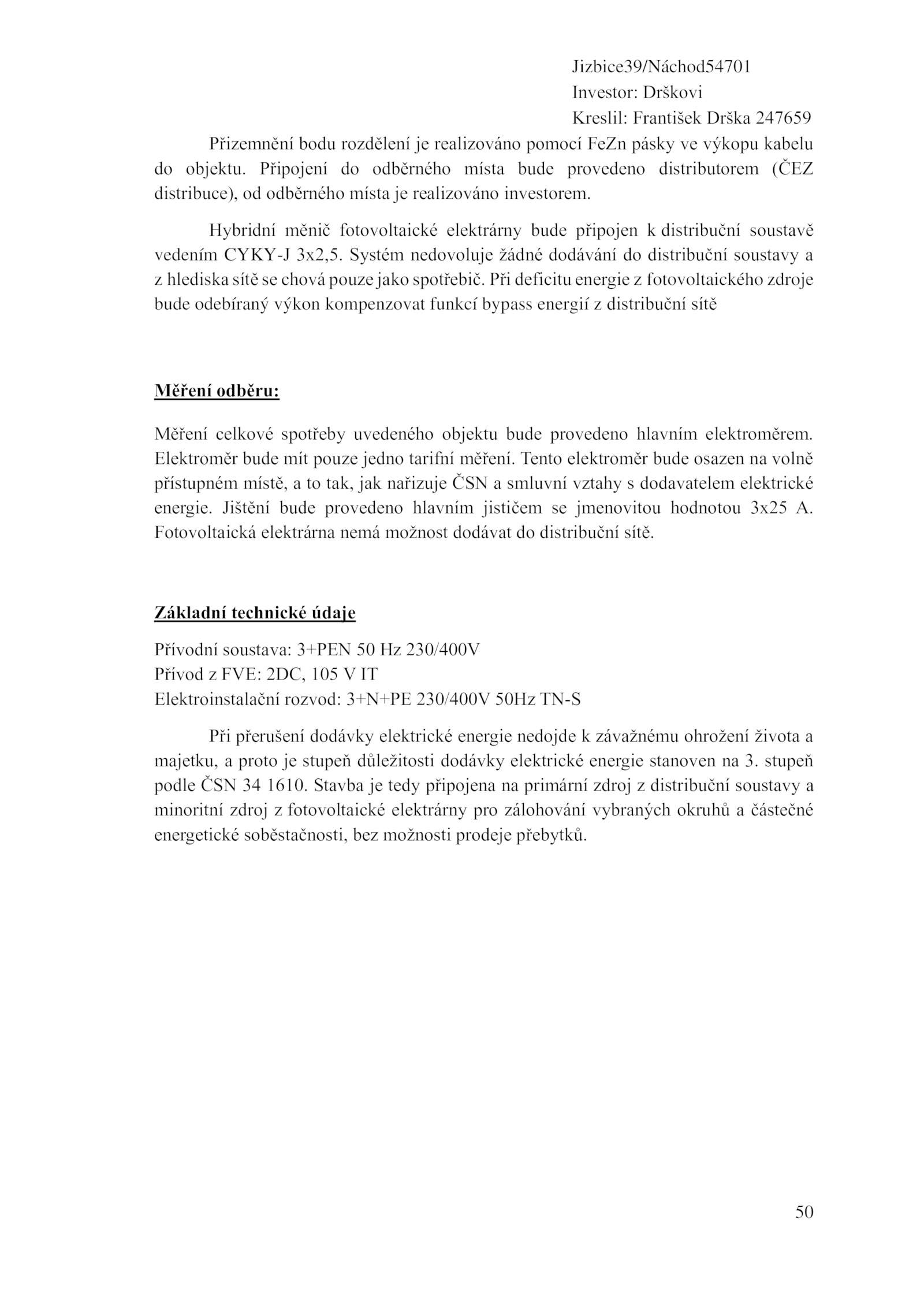 Měření celkové spotřeby uvedeného objektu bude provedeno hlavním elektroměrem.Jizbice39/Náchod54701