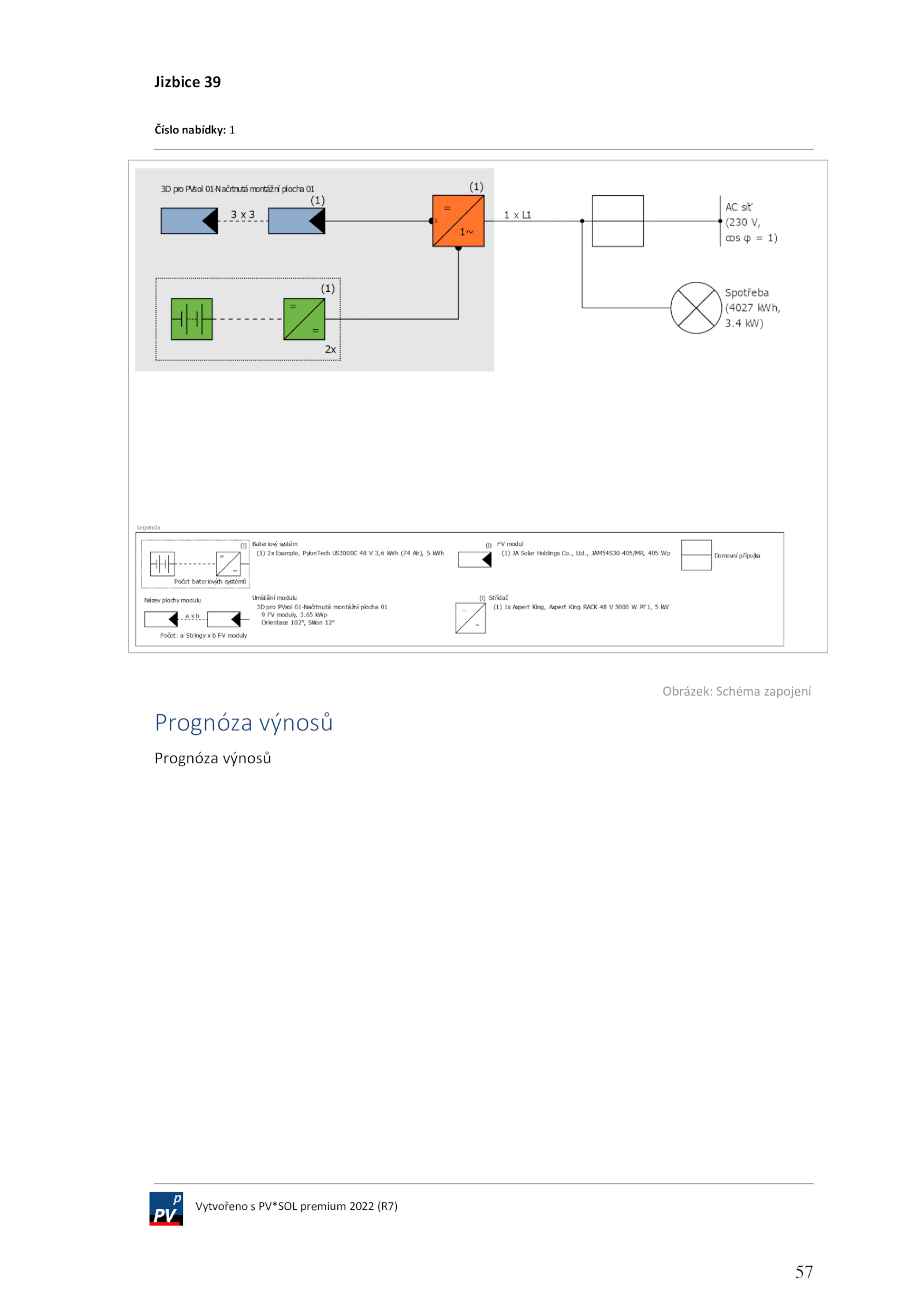 57 Vytvořeno PV*SOL premium 2022 (R7) Číslo nabídky: 1 Jizbice 39 Obrázek: Schéma zapojení Prognóza výnosů Prognóza výnosů