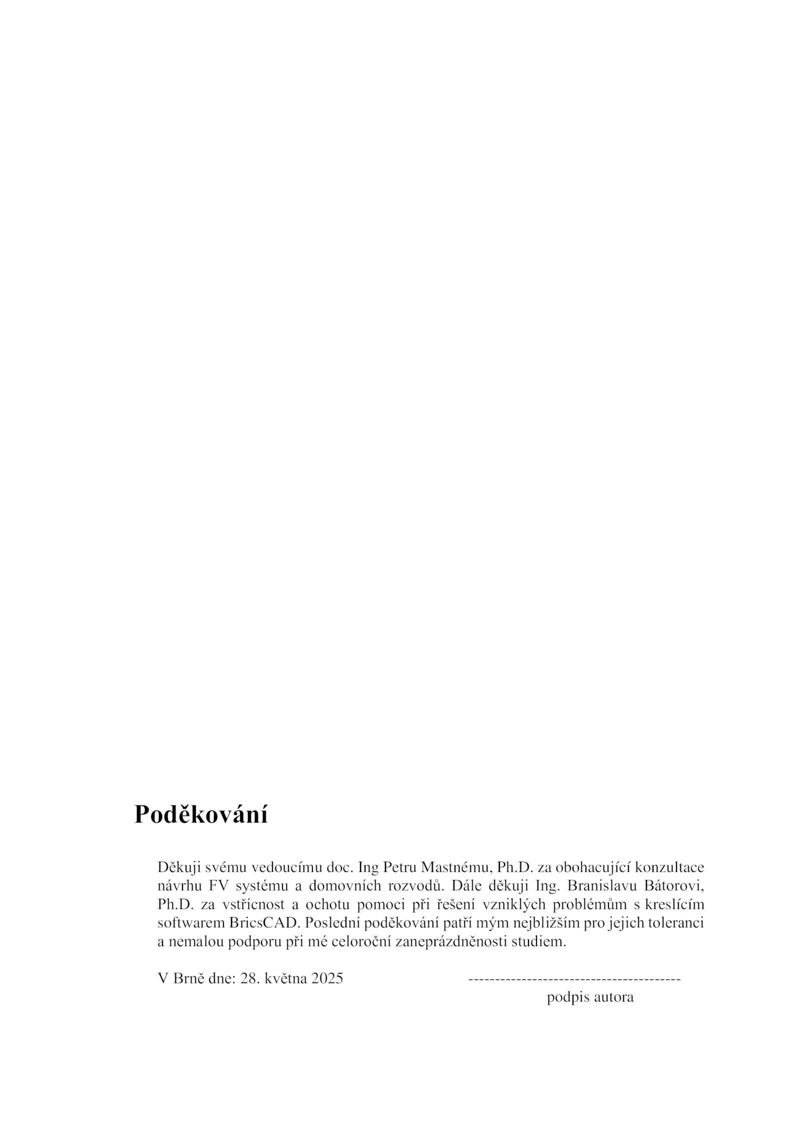 Děkuji svému vedoucímu doc. Dále děkuji Ing. Branislavu Bátorovi,