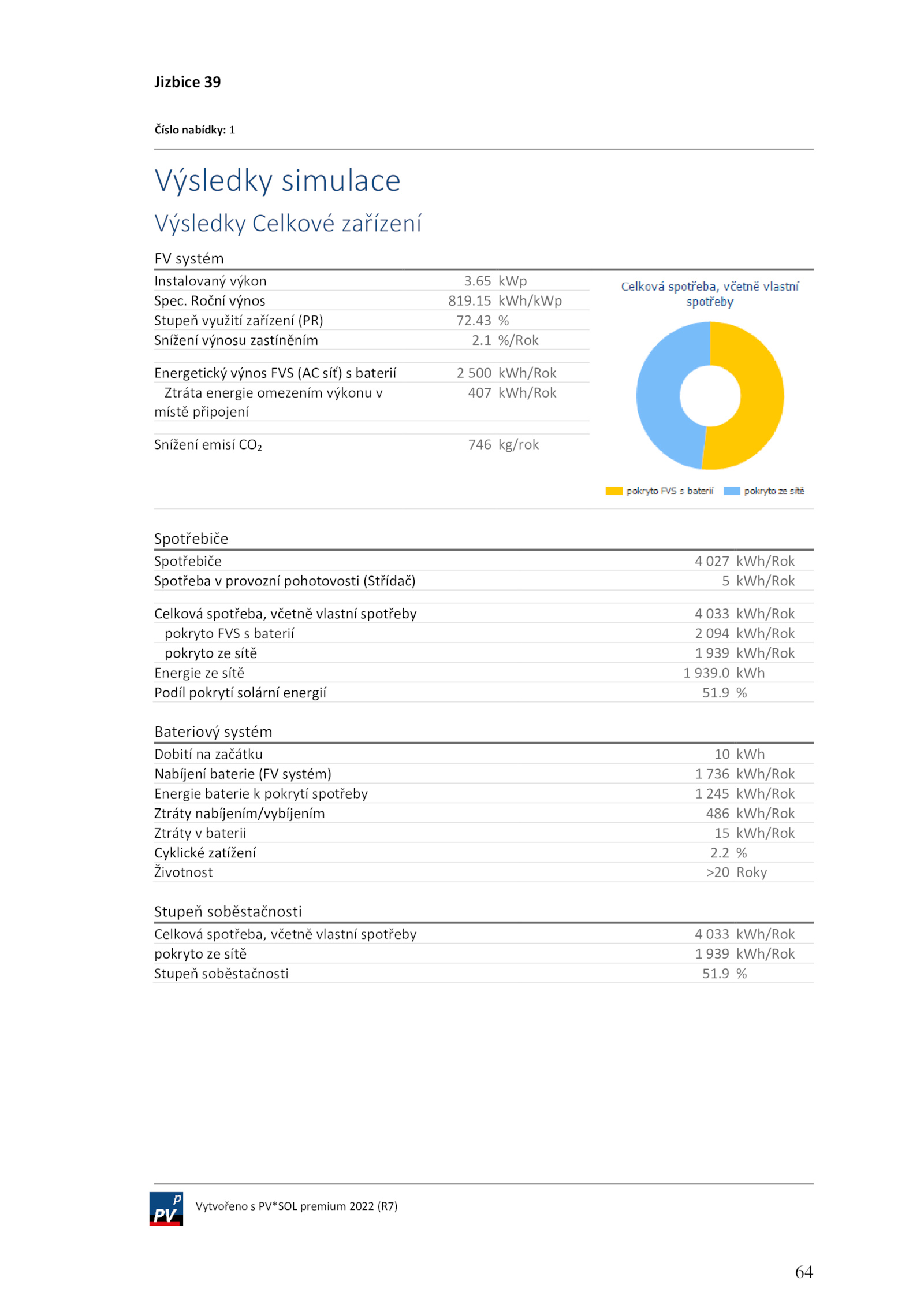 Podíl pokrytí solární energií 51. Roční výnos 819.15 kWh/kWp