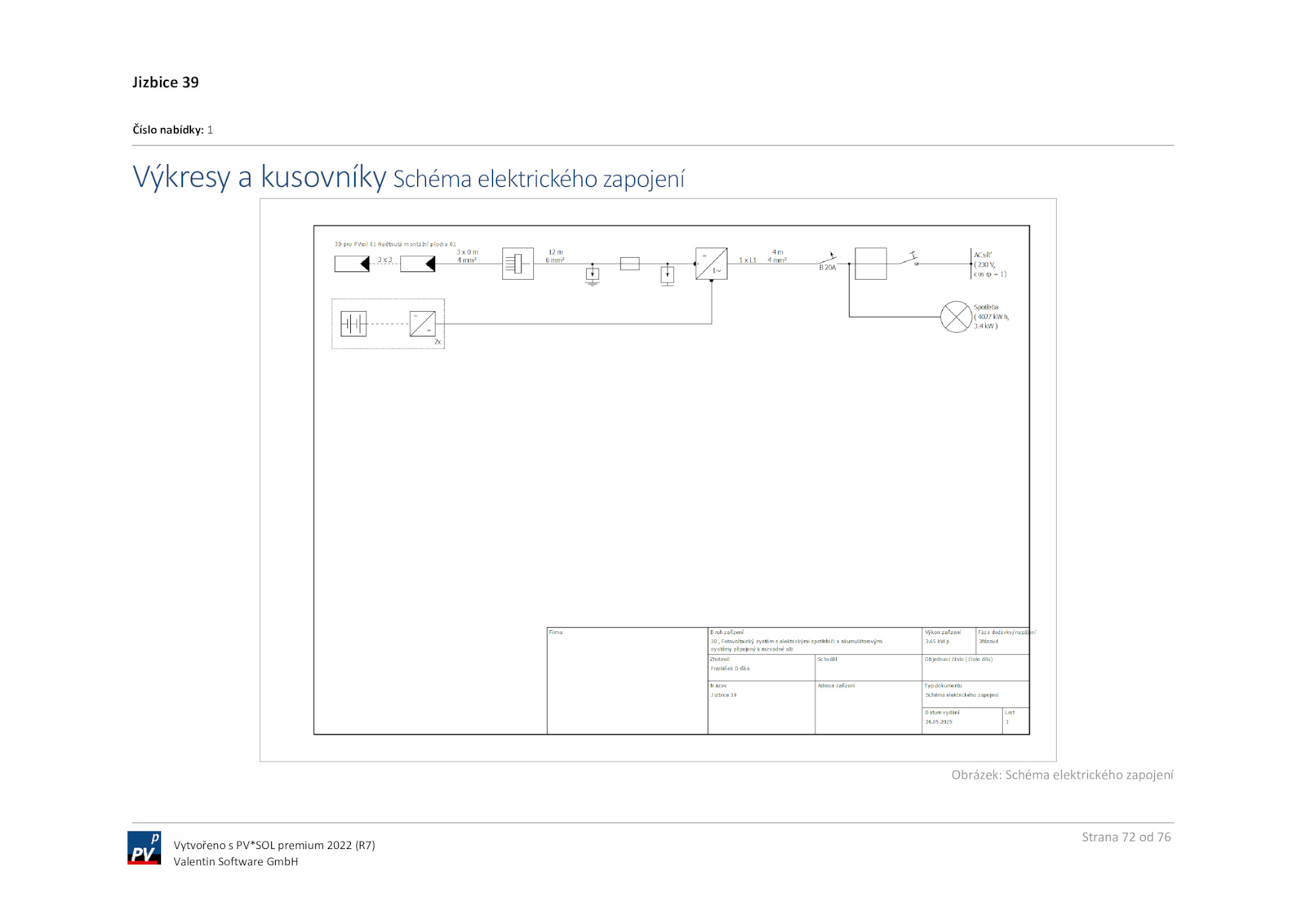 Číslo nabídky: 1 Jizbice 39 Valentin Software GmbH Strana 76 Vytvořeno PV*SOL premium 2022 (R7) Výkresy kusovníky Schéma elektrického zapojení Obrázek: Schéma elektrického zapojení