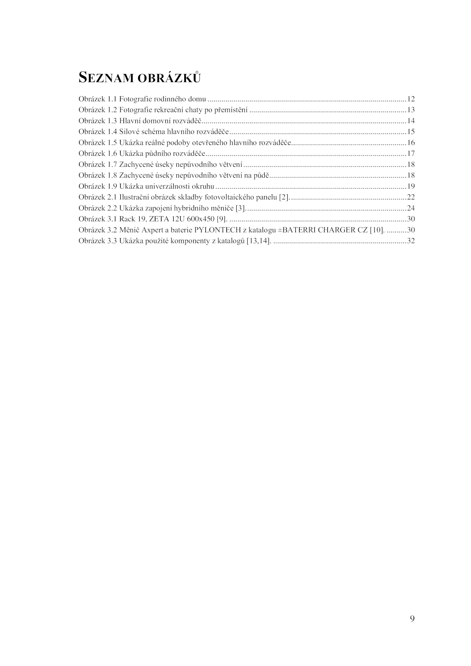 ...........................................................17 Obrázek 1....5 Ukázka reálné podoby otevřeného hlavního rozváděče............................30 Obrázek 3.....................................................................................24 Obrázek 3..........................9 Ukázka univerzálnosti okruhu...32 ...................19 Obrázek 2............18 Obrázek 1..........9 SEZNAM OBRÁZKŮ Obrázek 1...............2 Ukázka zapojení hybridního měniče [3].....................................................12 Obrázek 1.....1 Ilustrační obrázek skladby fotovoltaického panelu [2]...............30 Obrázek 3.............................................. .......................................15 Obrázek 1....................................1 Rack 19, ZETA 12U 600x450 [9]....................................13 Obrázek 1...2 Měnič Axpert baterie PYLONTECH katalogu ±BATERRI CHARGER [10].....................8 Zachycené úseky nepůvodního větvení půdě................................................4 Silové schéma hlavního rozváděče.........14 Obrázek 1...................3 Ukázka použité komponenty katalogů [13,14].........................2 Fotografie rekreační chaty přemístění ..6 Ukázka půdního rozváděče.18 Obrázek 1..................... ......16 Obrázek 1................................................................7 Zachycené úseky nepůvodního větvení...........................................................................................................22 Obrázek 2..........................................................................................................................................................................................3 Hlavní domovní rozváděč.............................. .....1 Fotografie rodinného domu ..............................................................