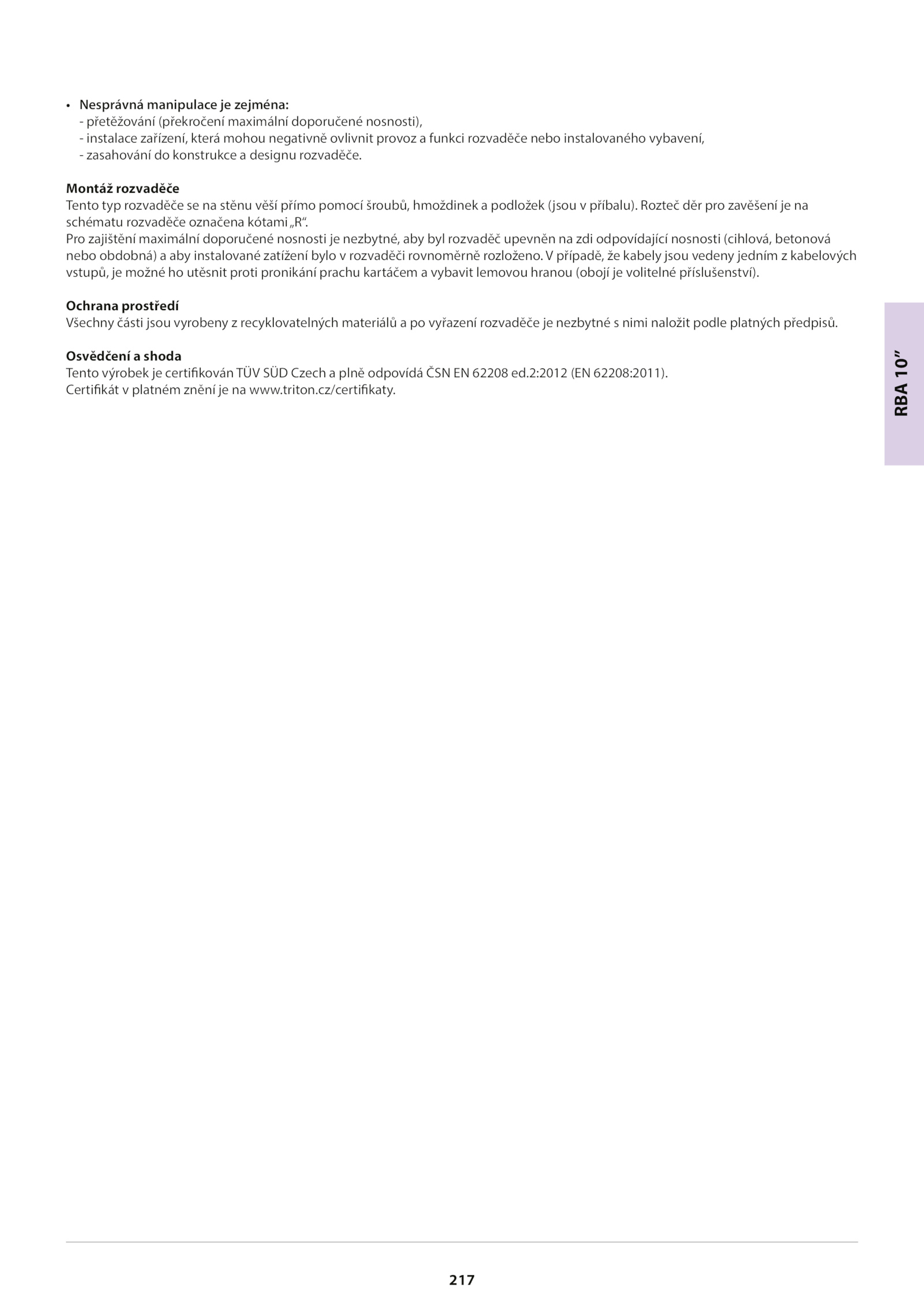 Všechny části jsou vyrobeny recyklovatelných materiálů vyřazení rozvaděče nezbytné nimi naložit podle platných předpisů.2:2012 (EN 62208:2011).triton.