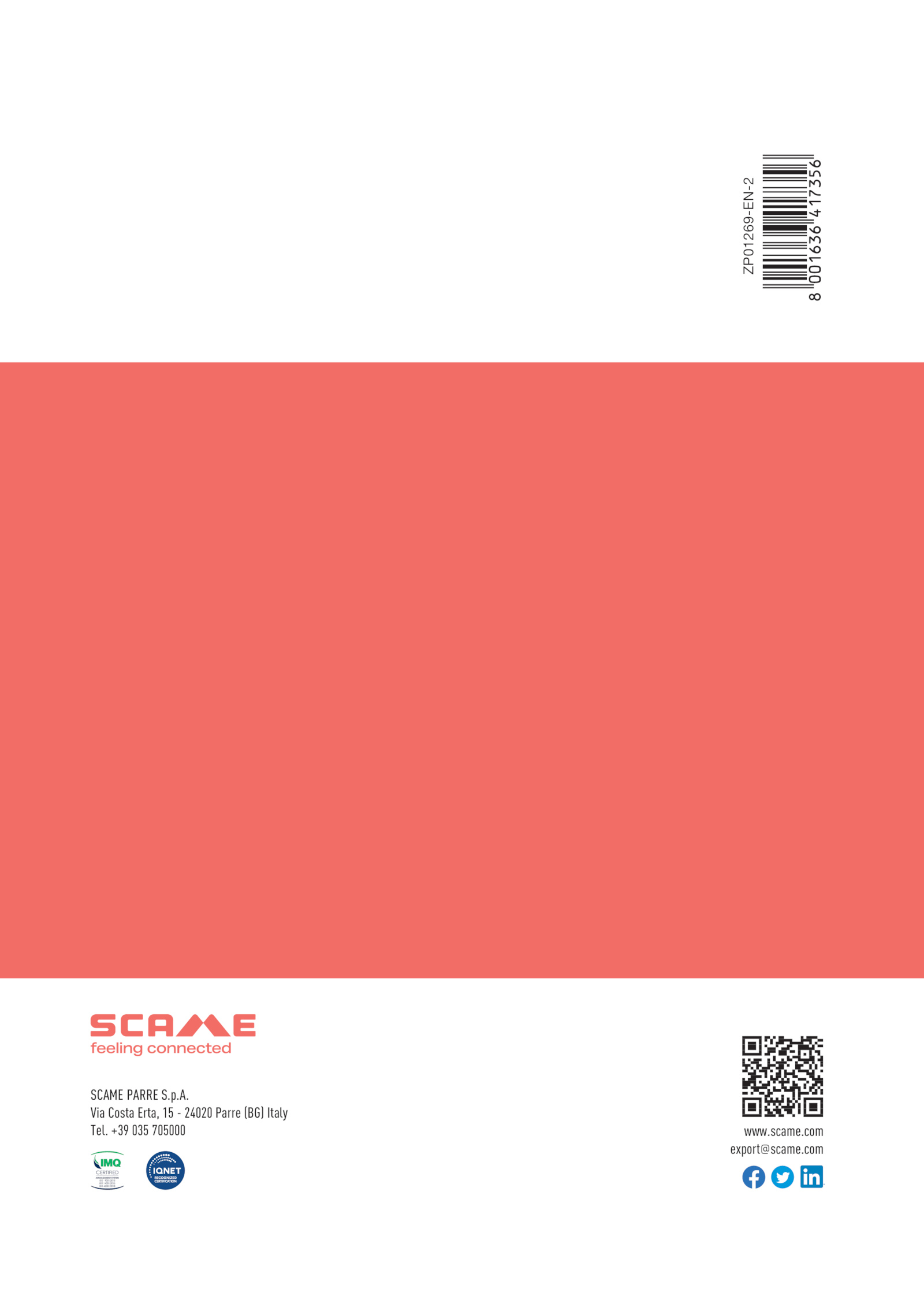 com export@scame.SCAME PARRE S.com ZP01269-EN-2 .A.scame.p. +39 035 705000 www. Via Costa Erta, 24020 Parre (BG) Italy Tel