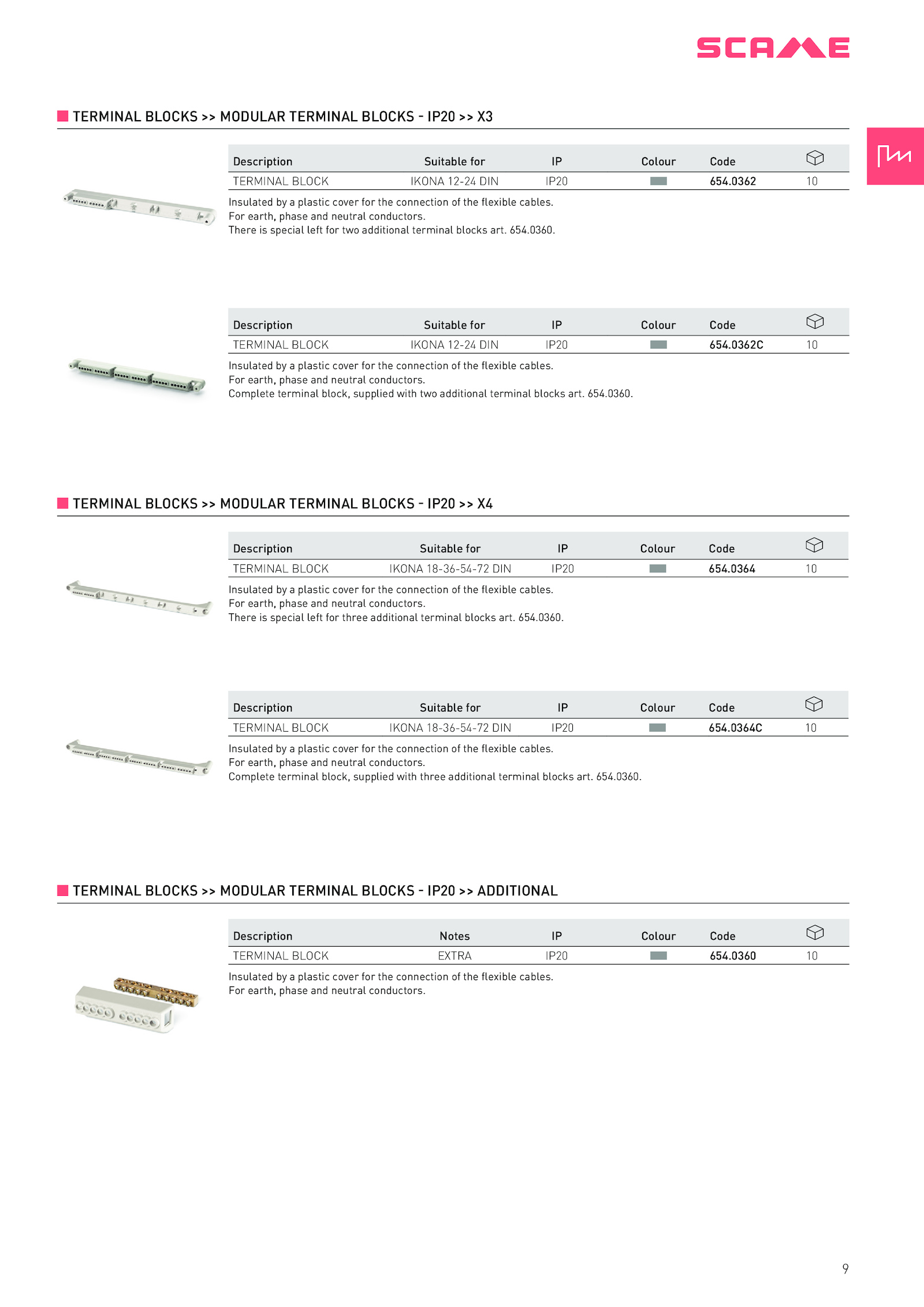 TERMINAL BLOCK IKONA 18-36-54-72 DIN IP20 654.0360.9