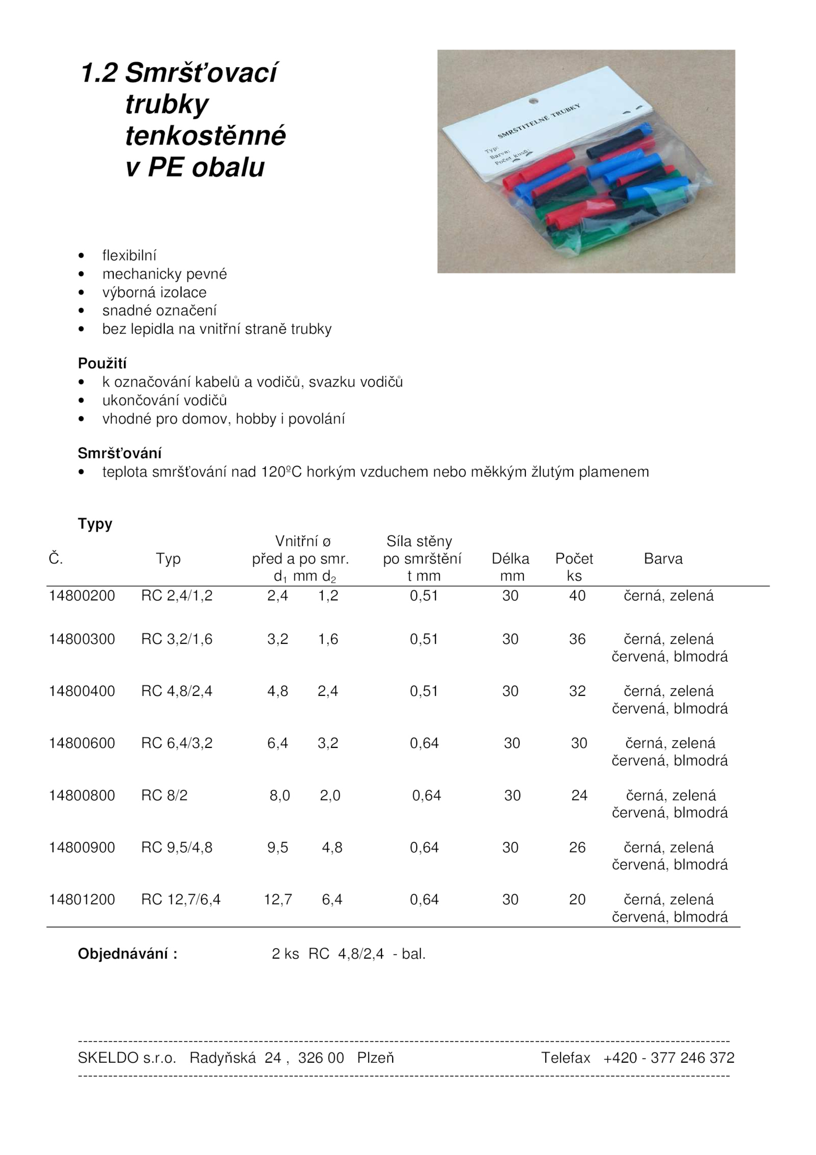 SKELDO s. Typ před smr. smrštění Délka Počet Barva