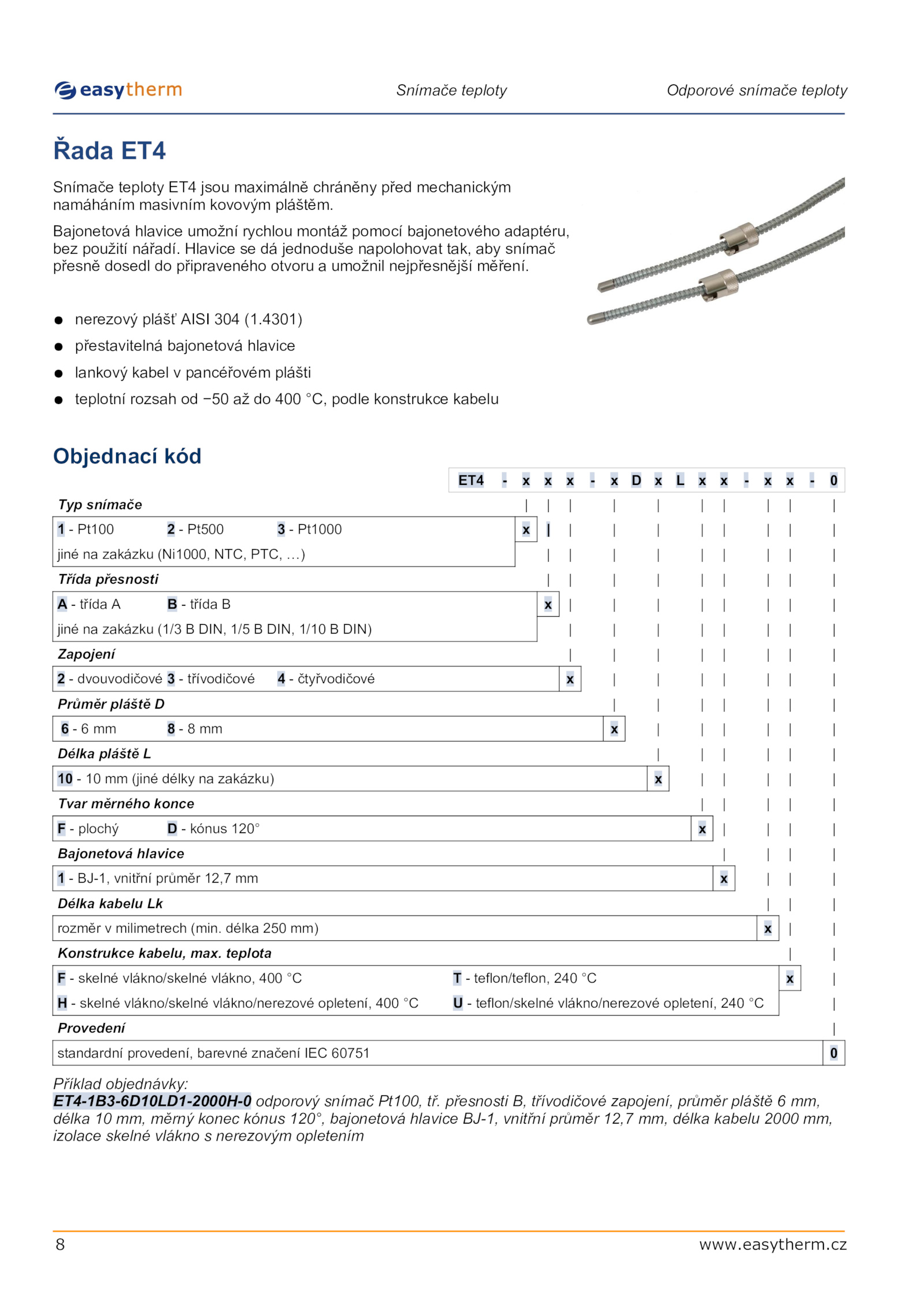 Snímače teploty ET4 jsou maximálně chráněny před mechanickým