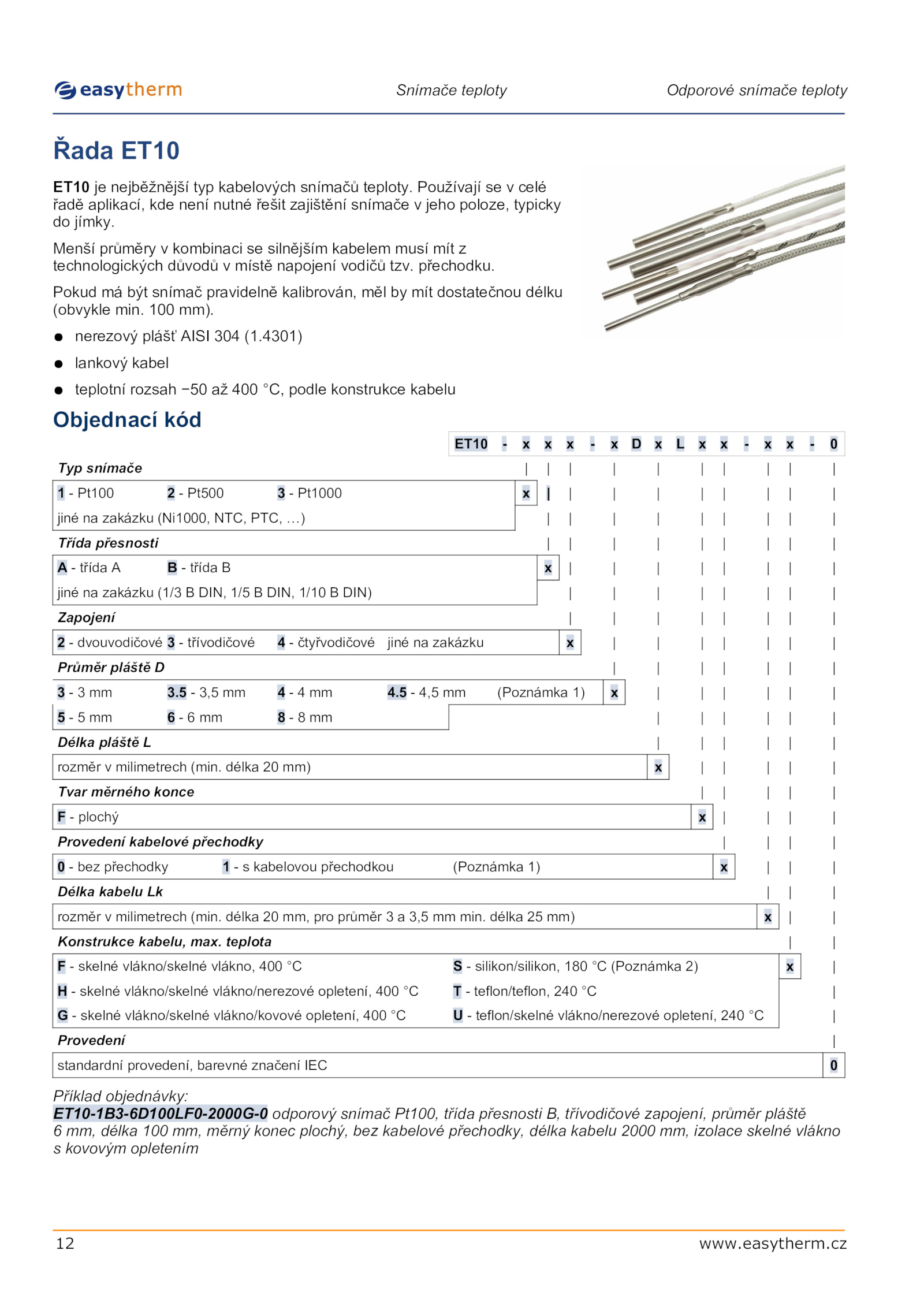 ET10 nejběžnější typ kabelových snímačů teploty.5 3,5 4. teplota |