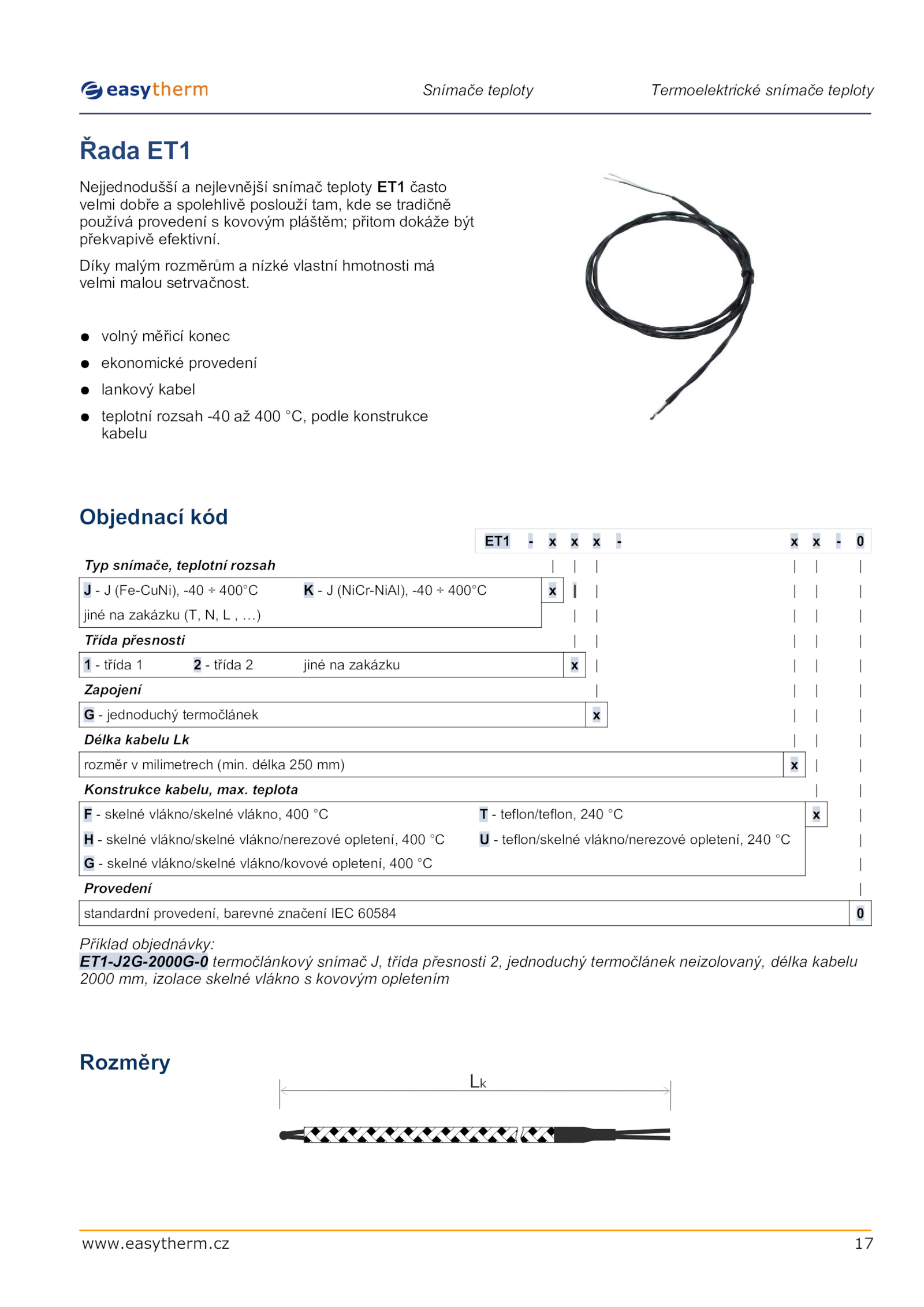 Nejjednodušší nejlevnější snímač teploty ET1 často