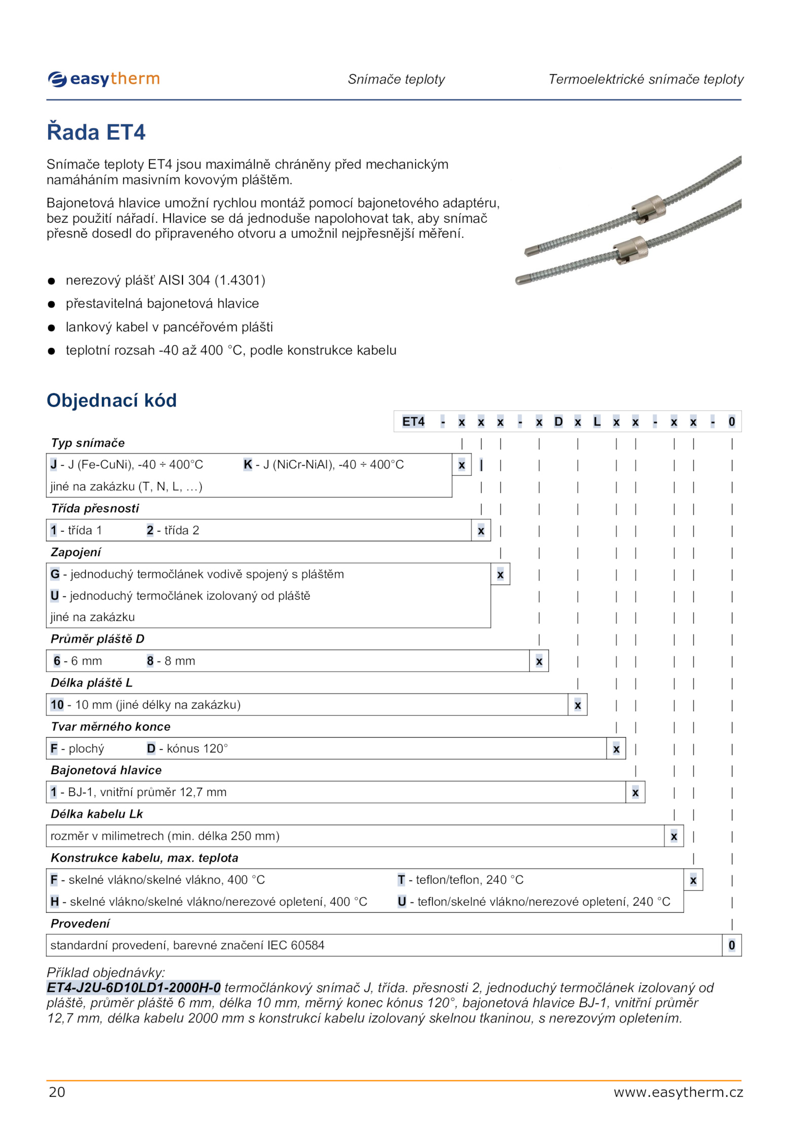 ET4-J2U-6D10LD1-2000H-0 termočlánkový snímač třída