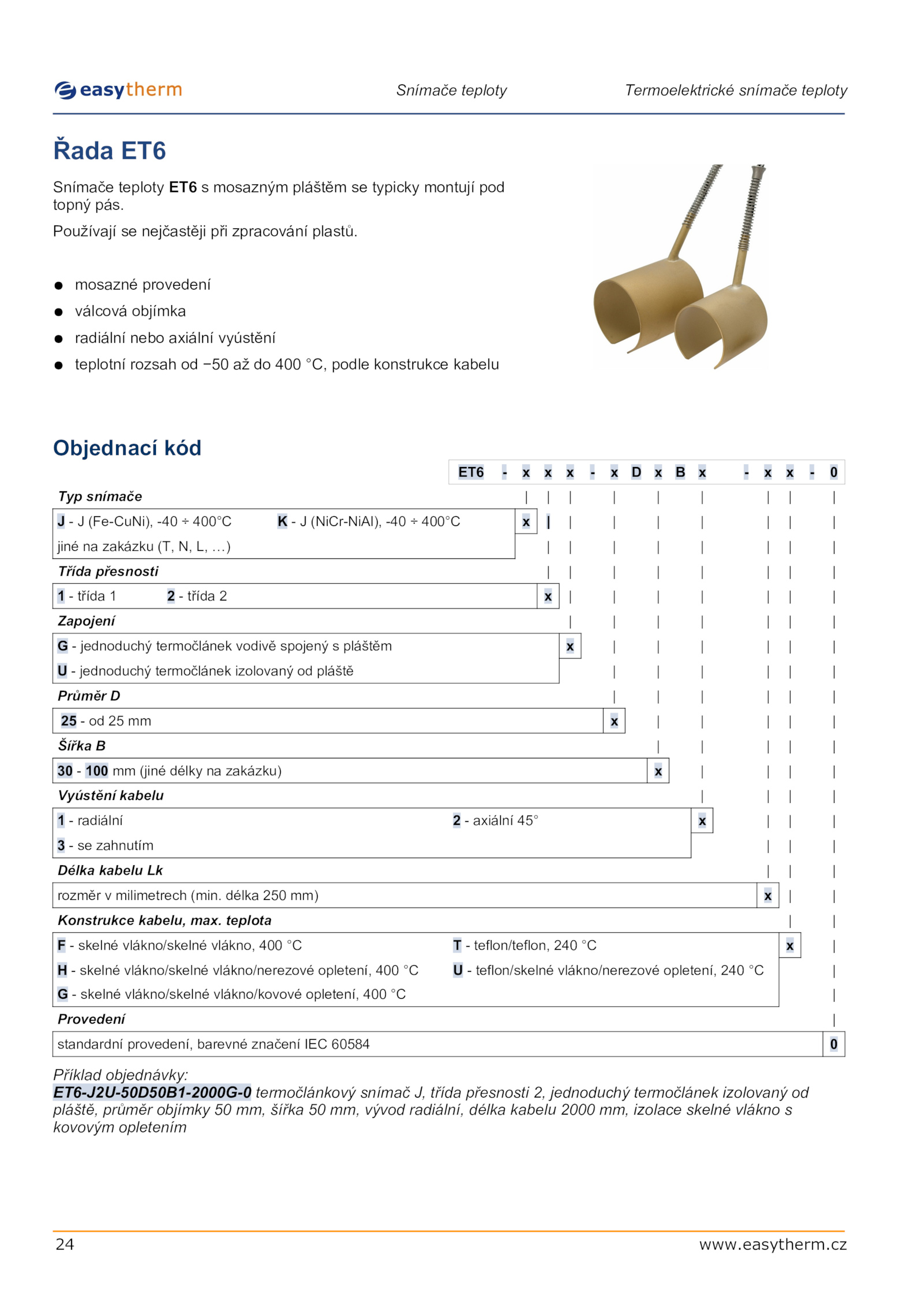 ET6-J2U-50D50B1-2000G-0 termočlánkový snímač třída přesnosti jednoduchý termočlánek izolovaný od