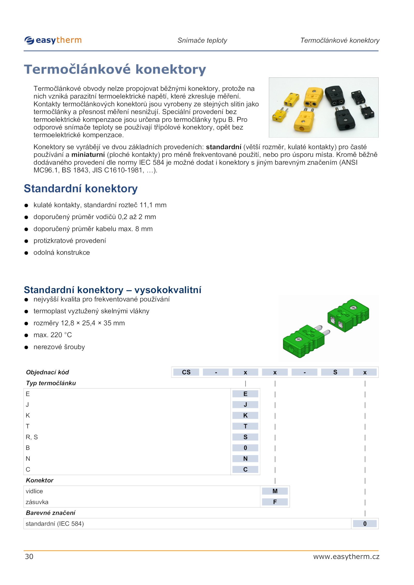 používání miniaturní (ploché kontakty) pro méně frekventované použití, nebo pro úsporu místa.easytherm. 220 °C