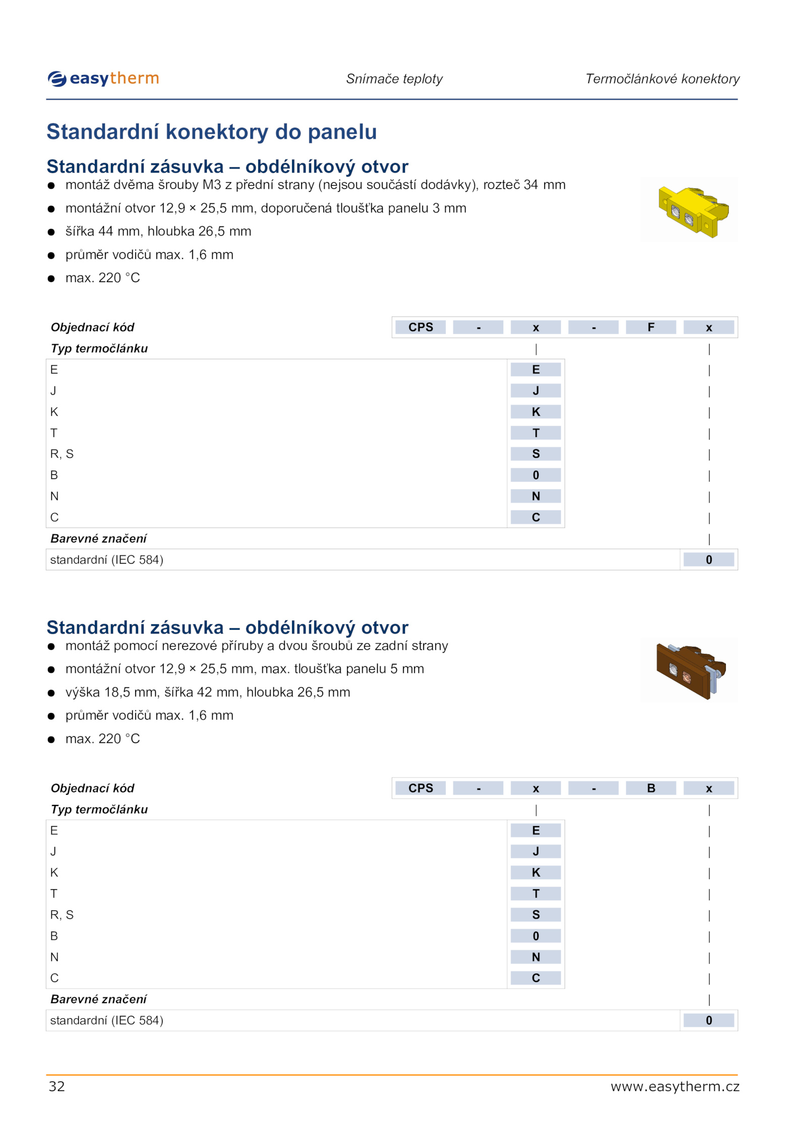 ● montážní otvor 12,9 25,5 mm, max.easytherm