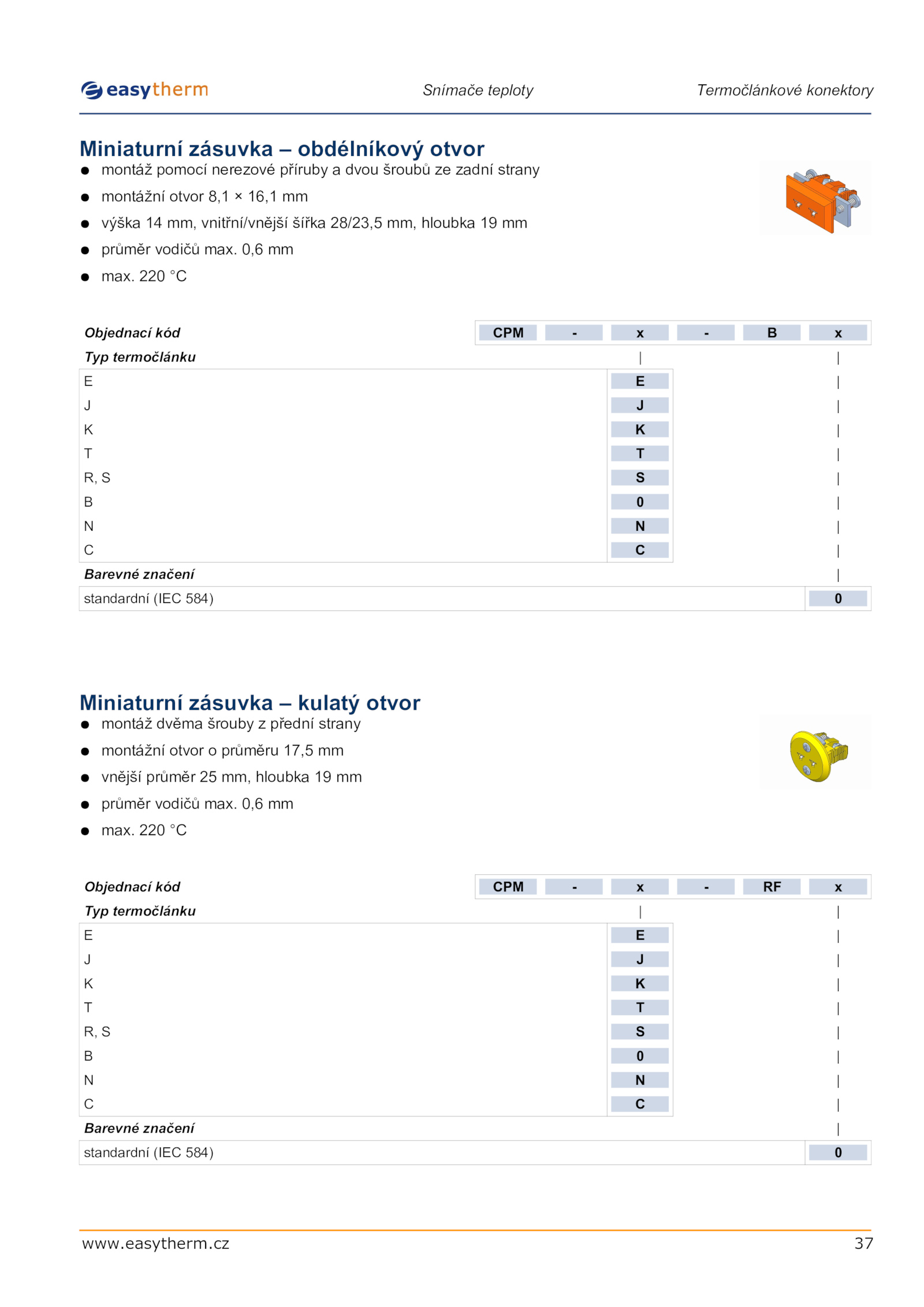 ● průměr vodičů max.easytherm.Snímače teploty Termočlánkové konektory