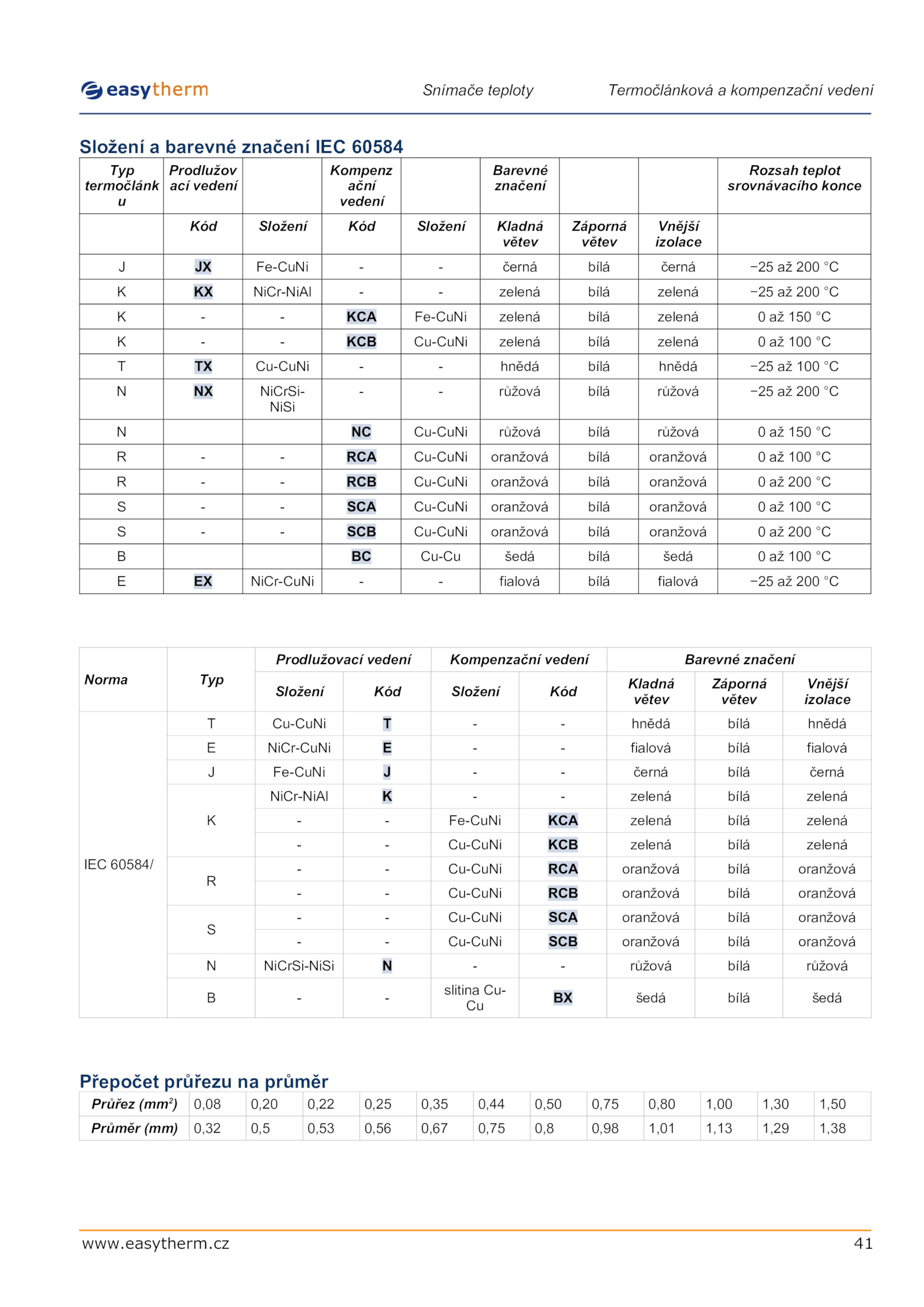 easytherm.Snímače teploty Termočlánková kompenzační vedení