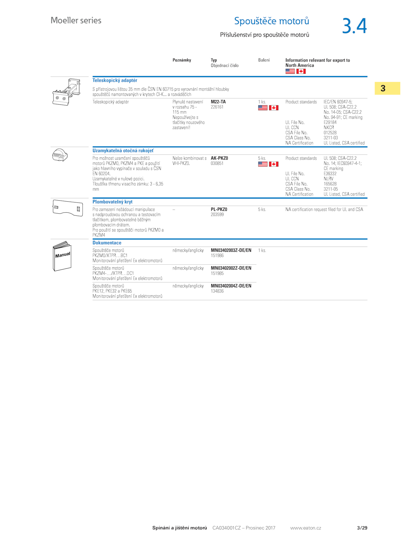 cz 226161 1 ks.3/29 3 CA034001CZ Prosinec 2017 www.eaton. Product standards 165628 3211-05 – 203599 5 ks. 151986 1 ks. 151985 134836 . Product standards 012528 3211-03 mm 030851 5 ks