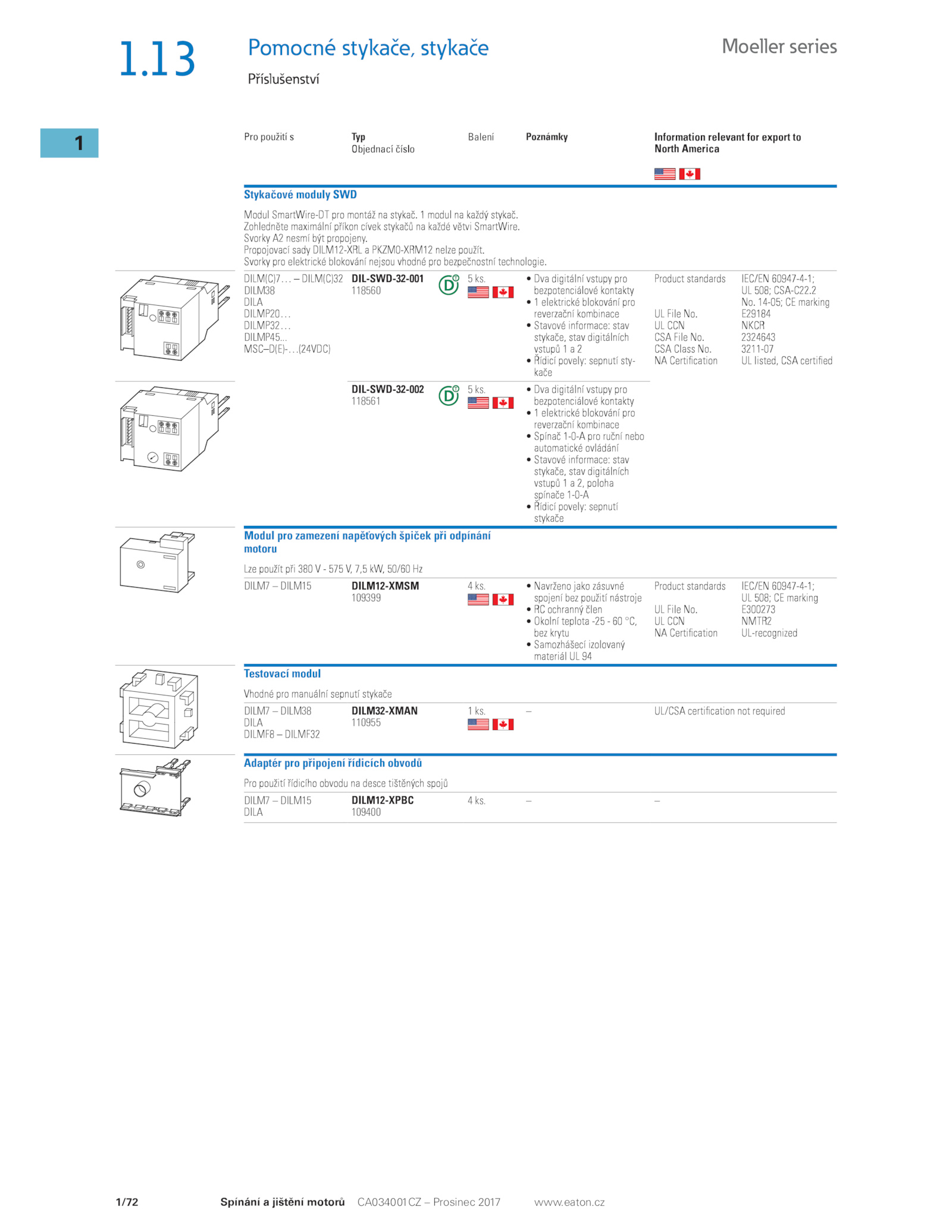 eaton.. – DILM7 DILM15 109400 4 ks. • • • • • DILM7 DILM15 109399 4 ks. • • • • DILM7 DILM38 110955 1 ks.cz Balení DILM38 DILMP45. 118560 5 ks. • • • • - 118561 5 ks...1/72 1 CA034001CZ Prosinec 2017 www
