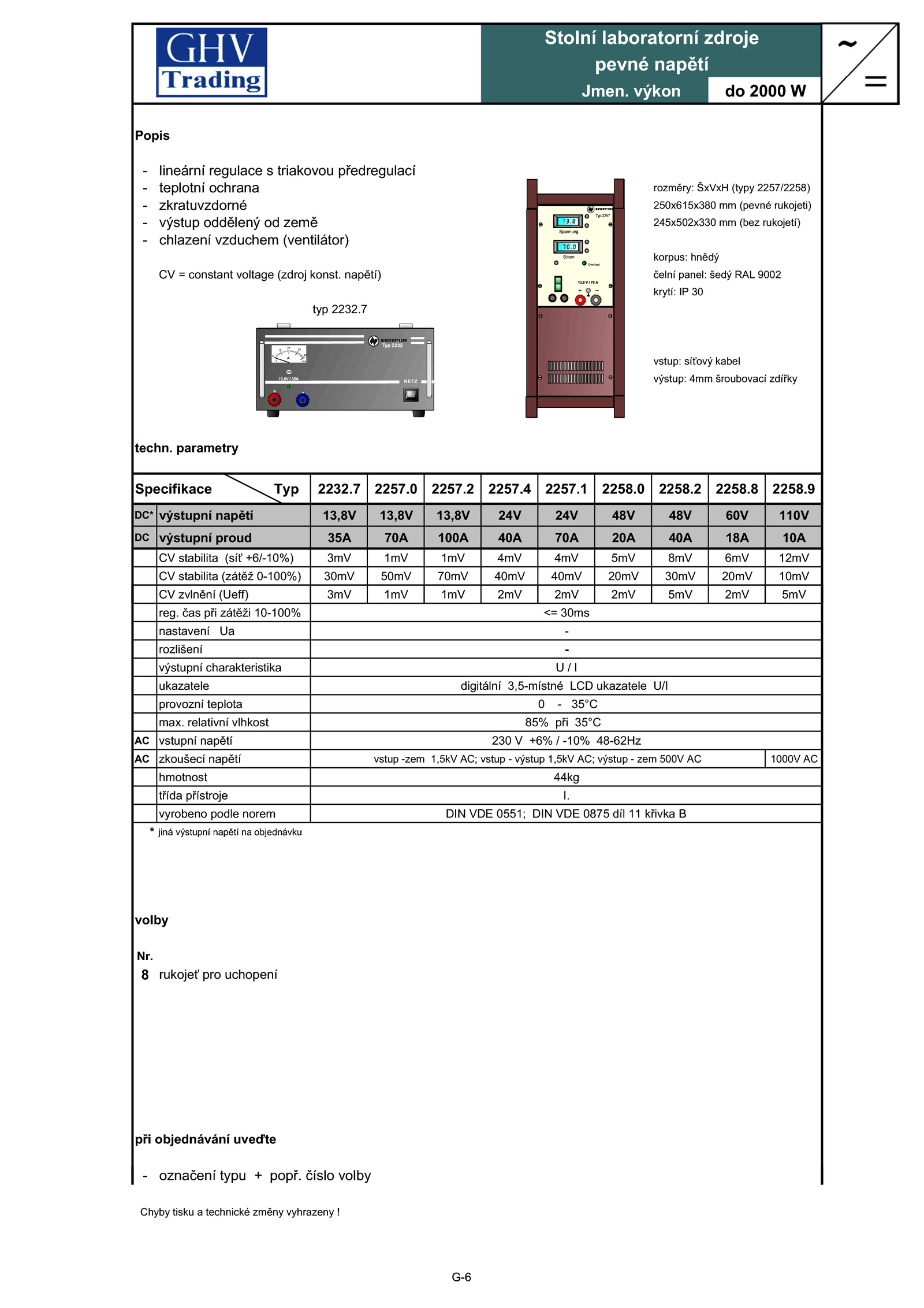 CV stabilita (síť +6/-10%) stabilita (zátěž 0-100%) zvlnění (Ueff) reg. napětí) typ 2232. parametry