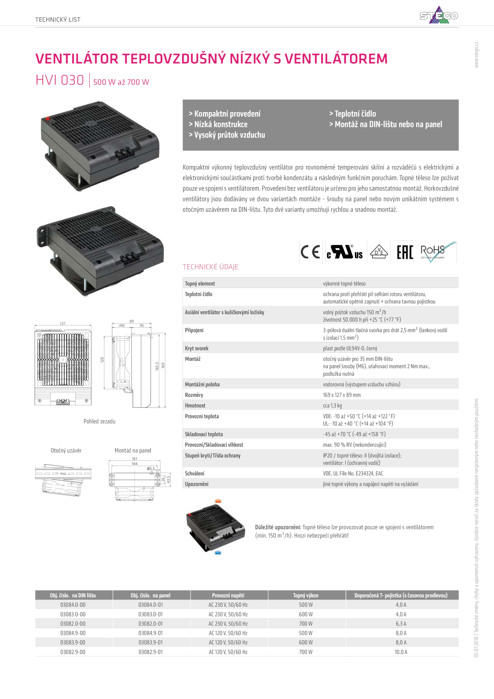 03082.9-00 03082. DIN lištu Obj. 150 m³/h). Topné těleso lze požívat