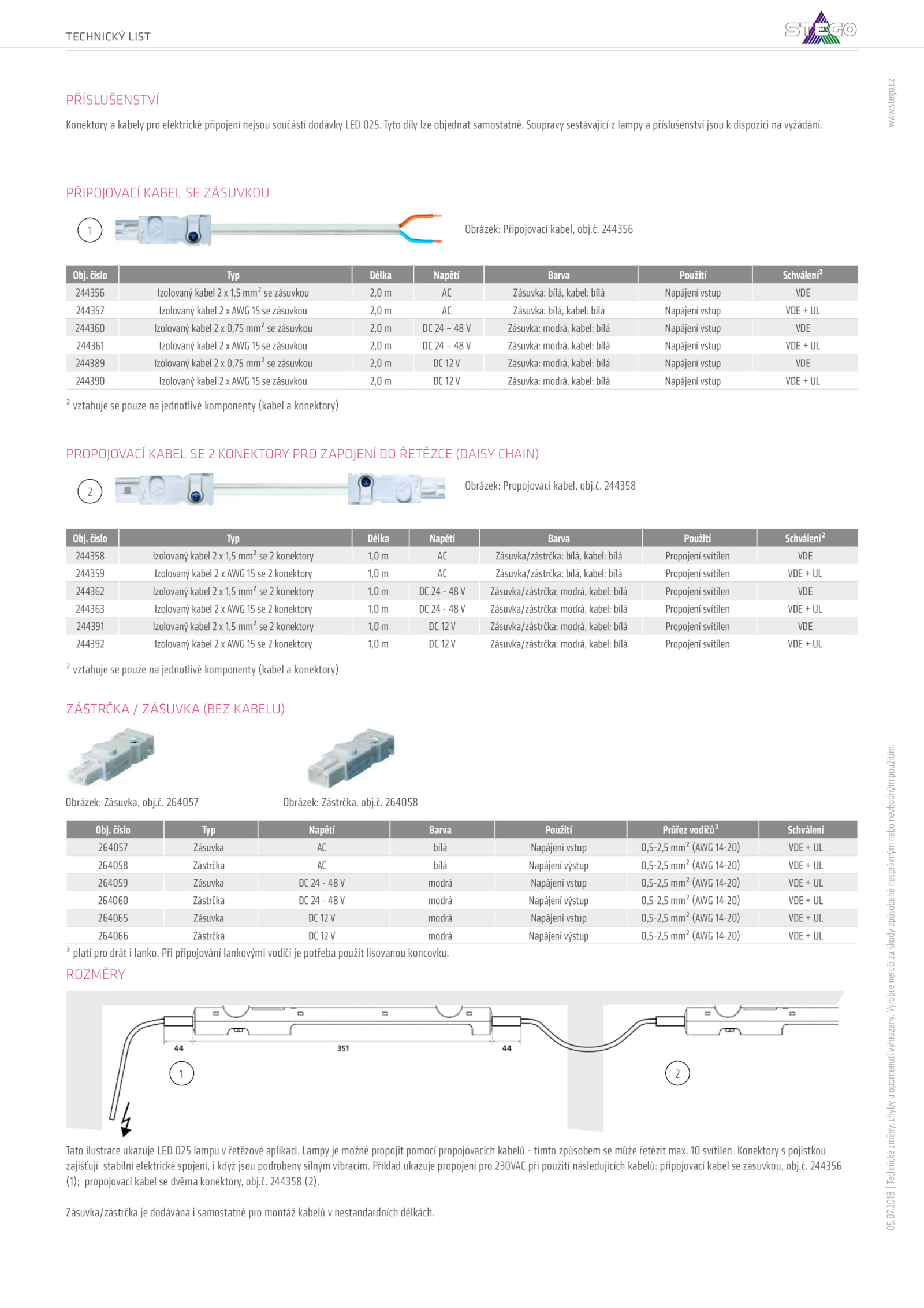 Tato ilustrace ukazuje LED 025 lampu řetězové aplikaci. číslo Typ Napětí Barva Použití Průřez vodičů³ Schválení