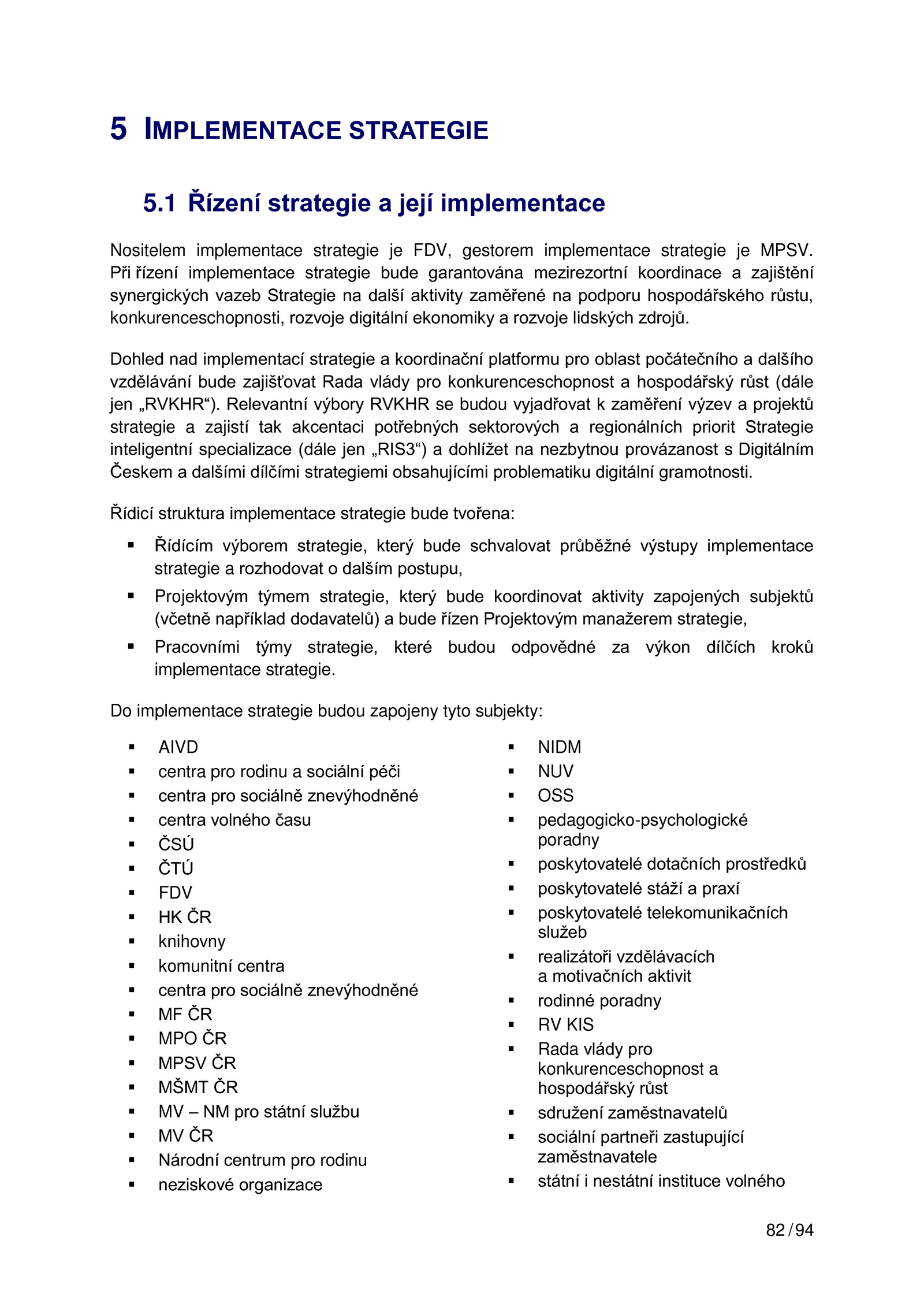 Při řízení implementace strategie bude garantována mezirezortní koordinace zajištění