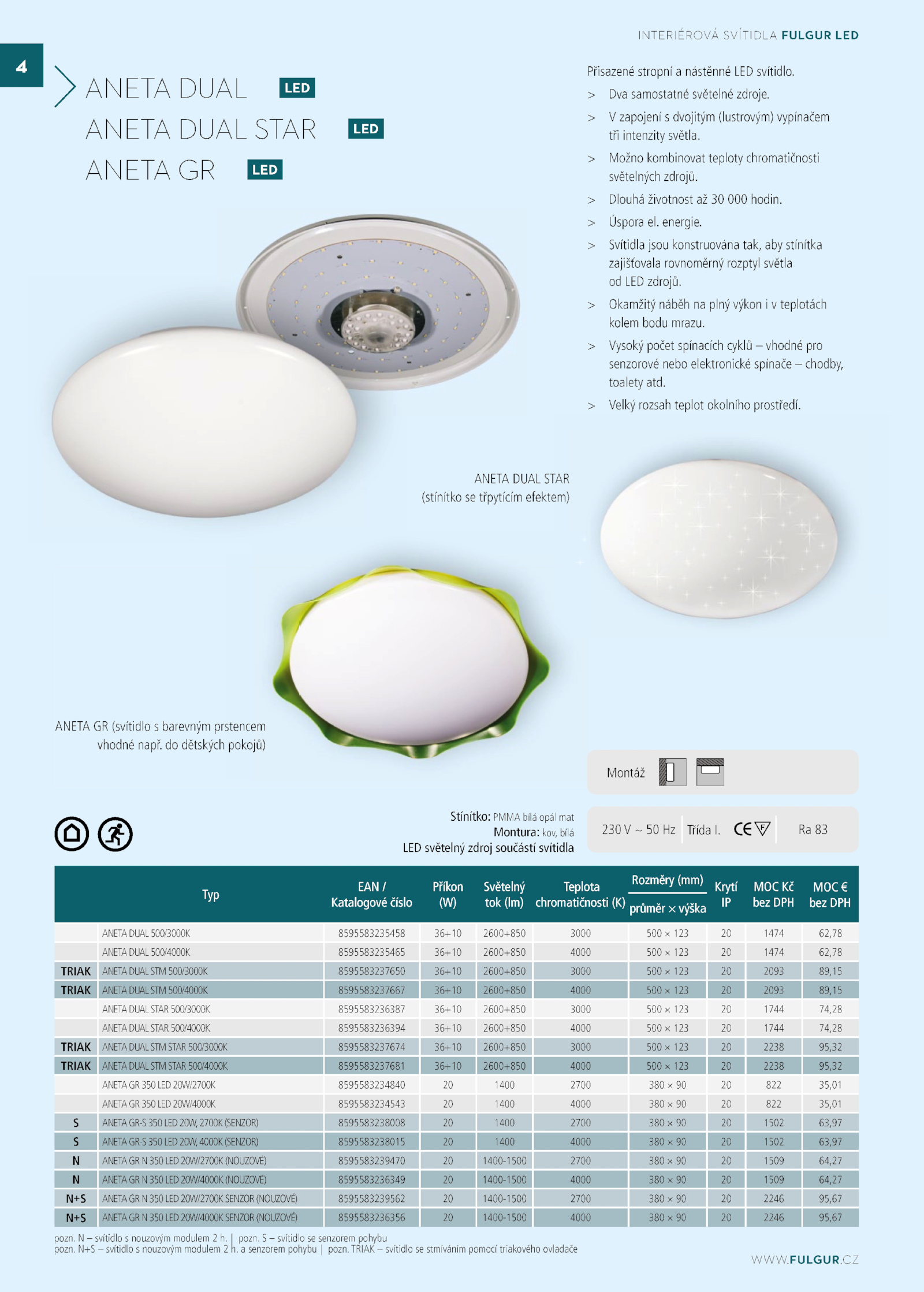 > Dlouhá životnost 000 hodin.INTERIÉROVÁ SVÍTIDLA FULGUR LED