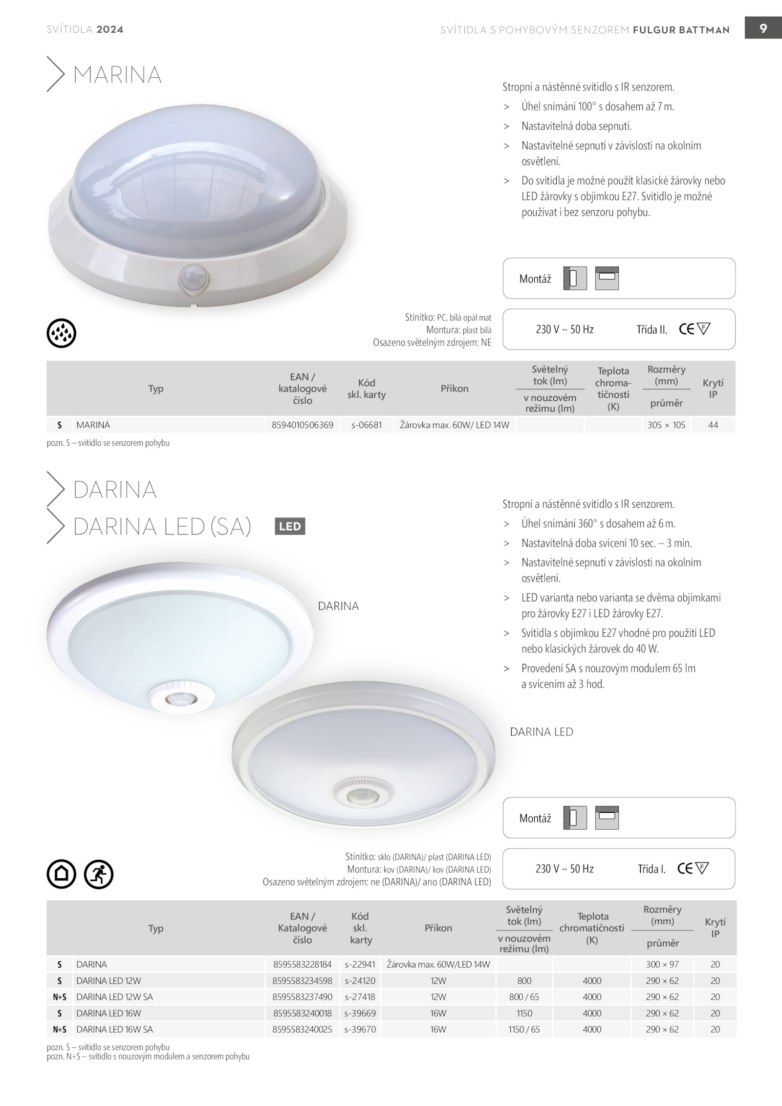 nebo klasických žárovek W. svítidlo senzorem pohybu
