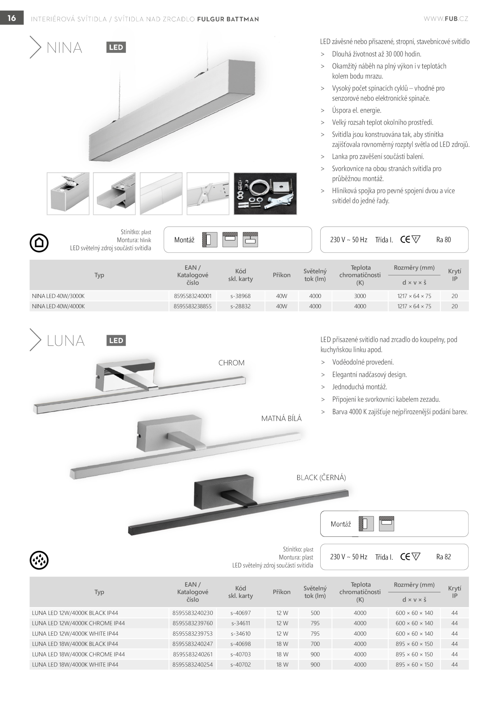 INTERIÉROVÁ SVÍTIDLA SVÍTIDLA NAD ZRCADLO FULGUR BATTMAN