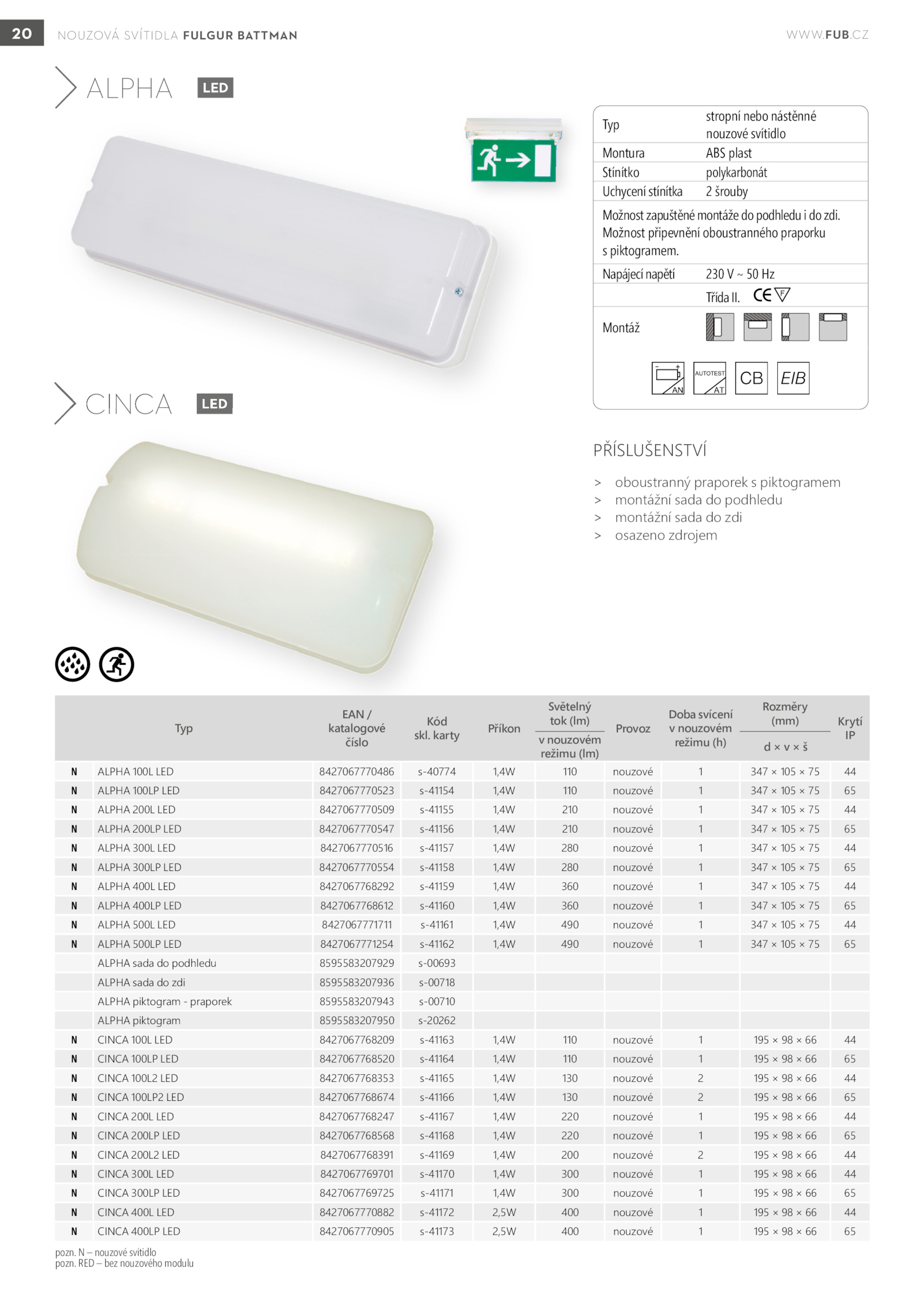 N ALPHA 200L LED 8427067770509 s-41155 1,4W 210 nouzové 347 105 44