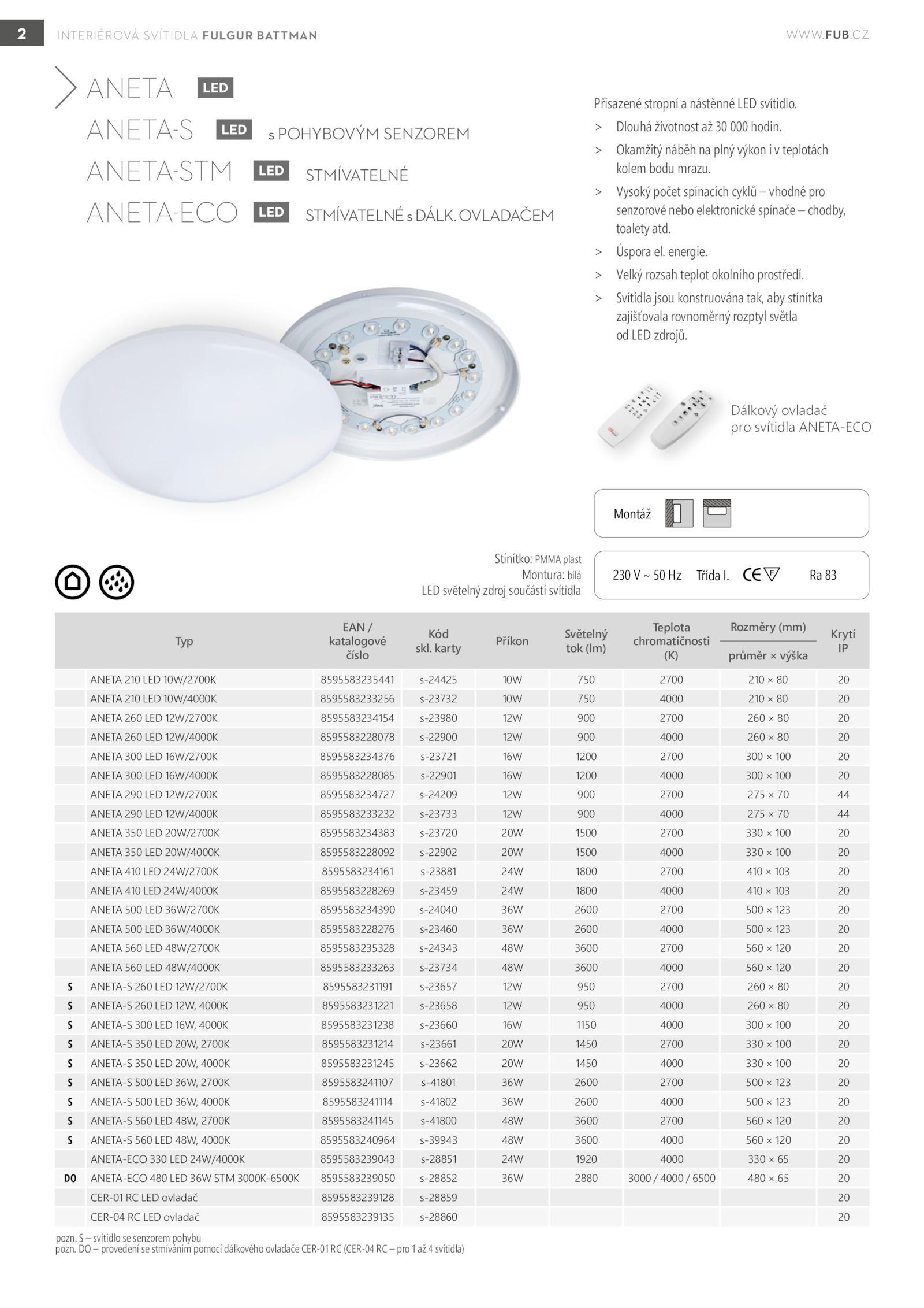 ANETA-ECO LED STMÍVATELNÉsDÁLK. provedení stmíváním pomocí dálkového ovladače CER-01 (CER-04 pro svítidla)