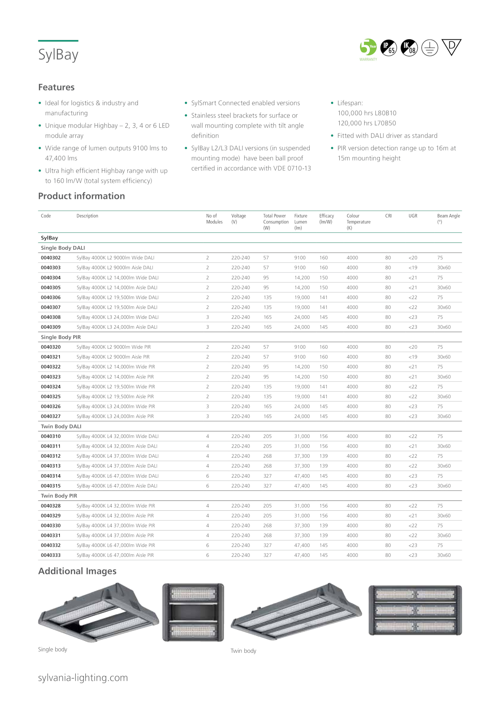 0040310 SylBay 4000K 32,000lm Wide DALI 220-240 205 31,000 156 4000 <22 75